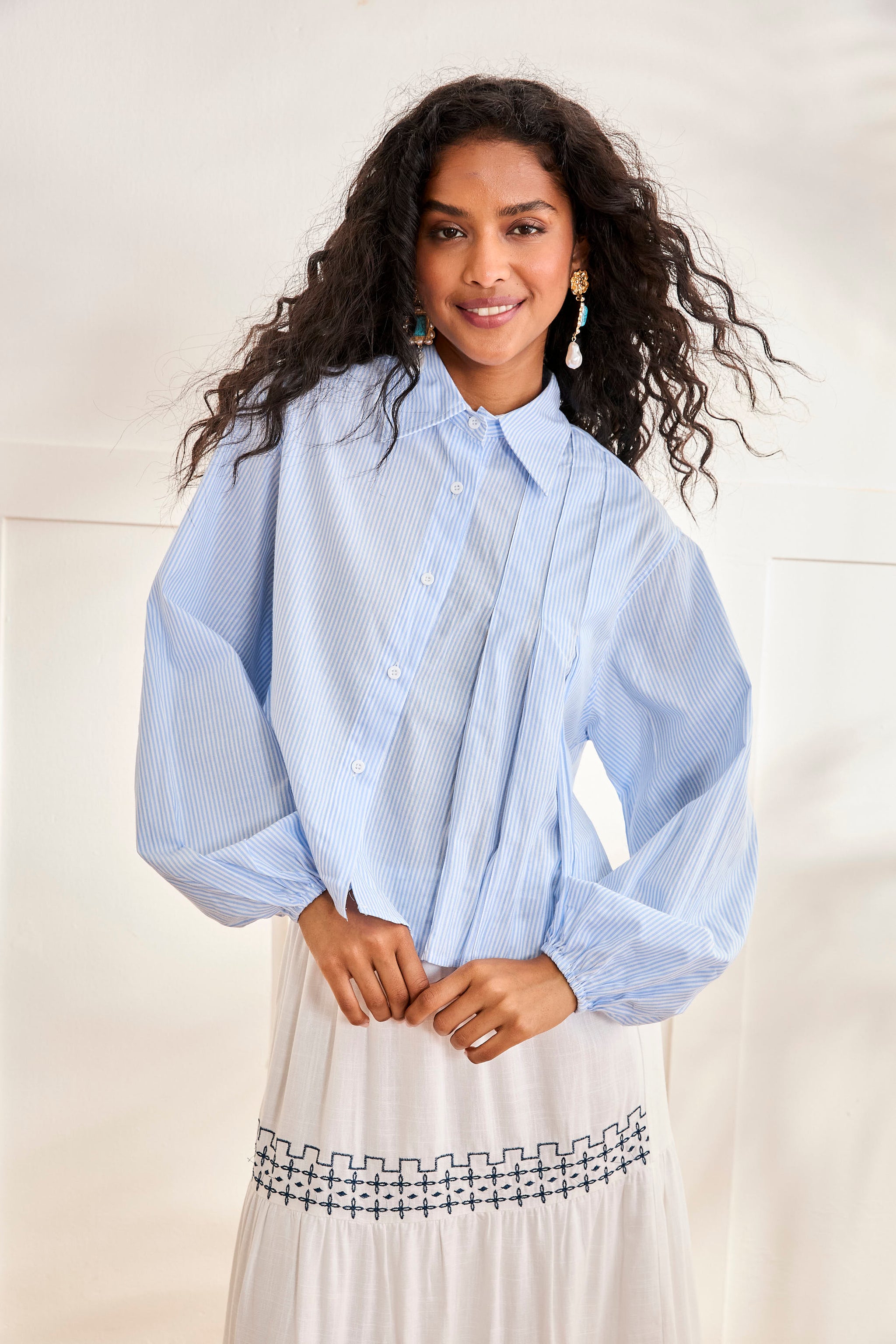 BLUSA MIL RAYAS PLISADOS - AZUL