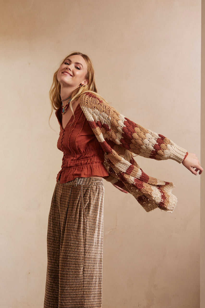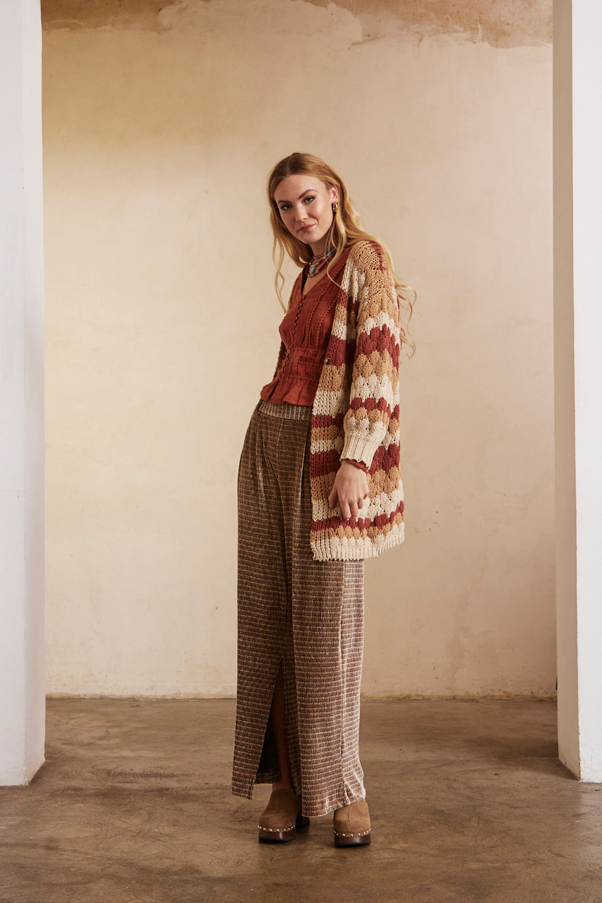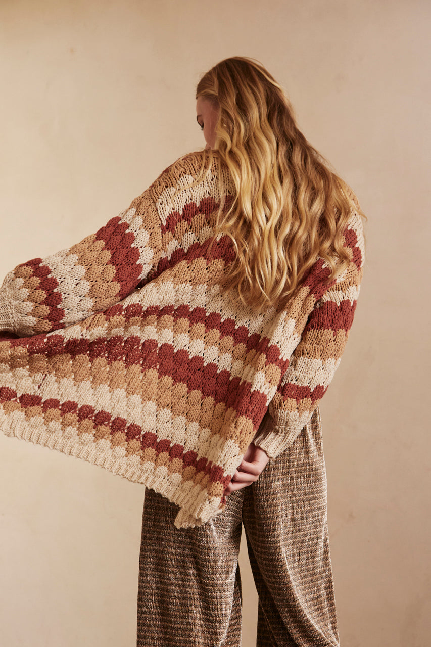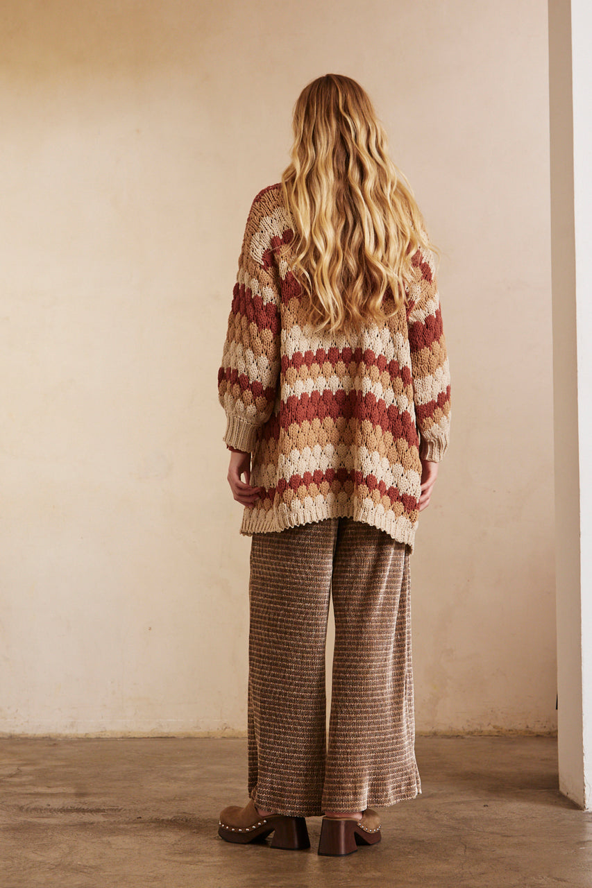 CARDIGAN LARGO MANGA LARGA LISTADO CON CALADOS - SAND
