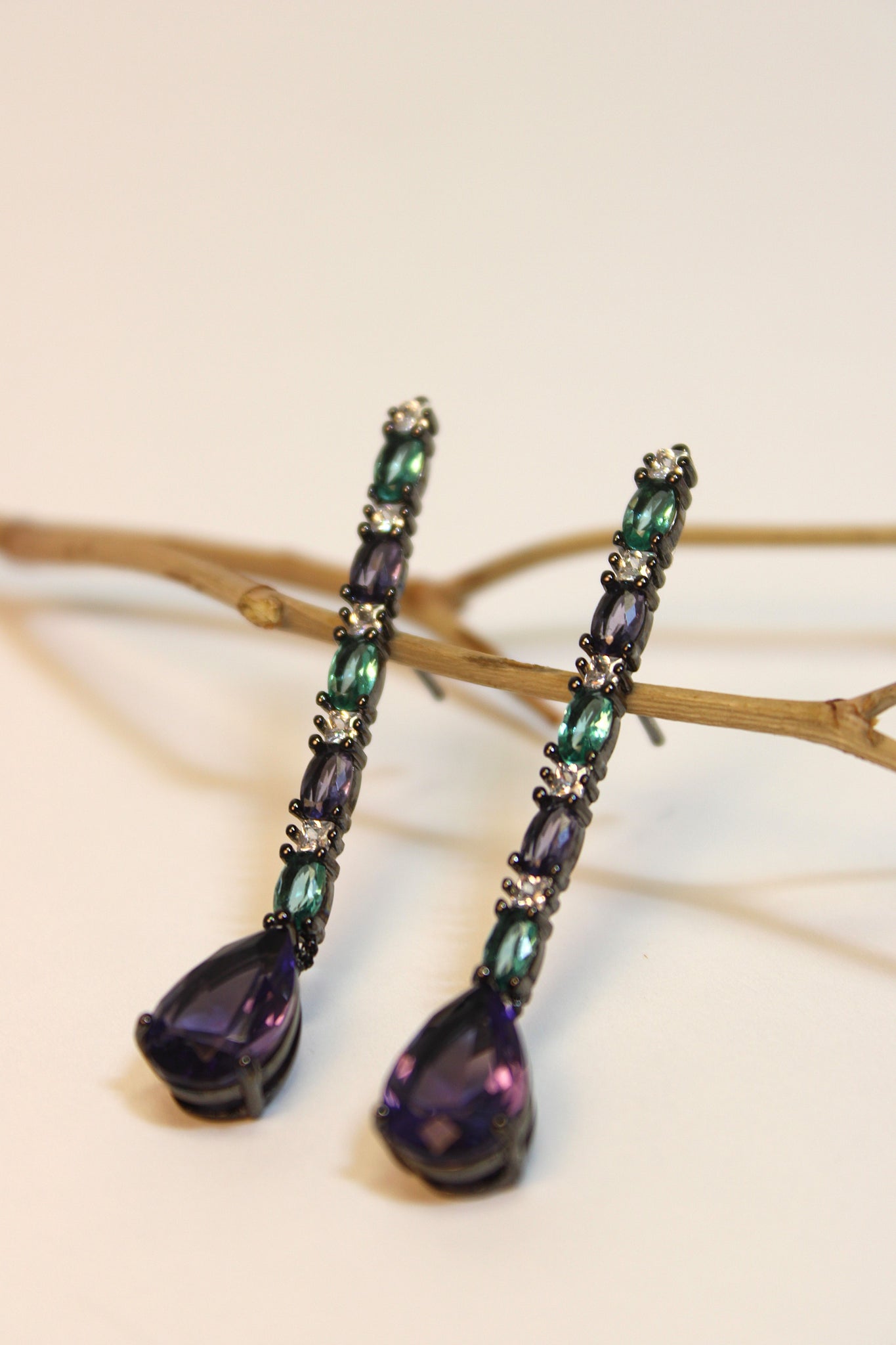 PENDIENTES ALARGADOS GOTA PIEDRA - VIOLET
