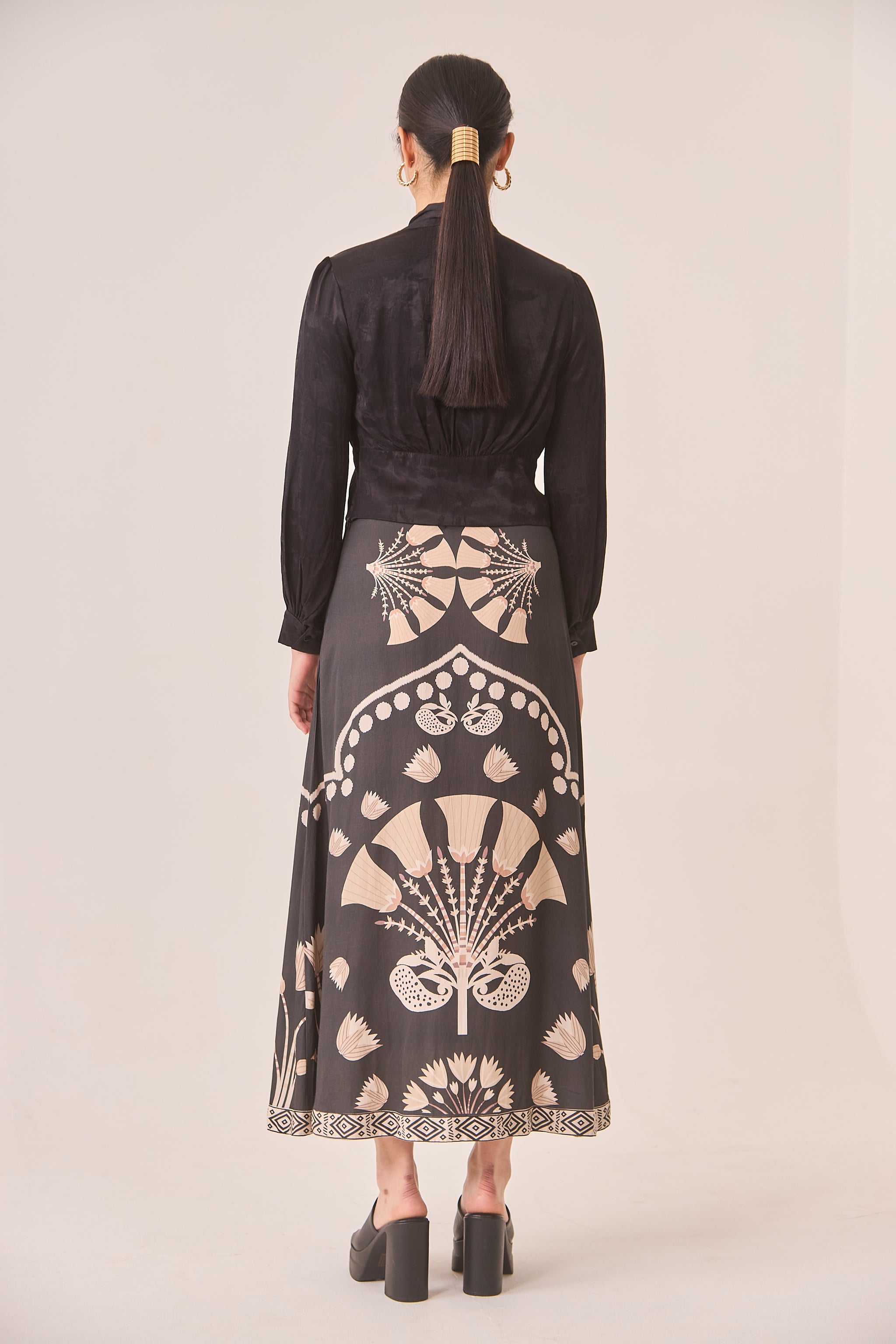 FALDA BICOLOR MOTIVOS FLORALES - BLACK