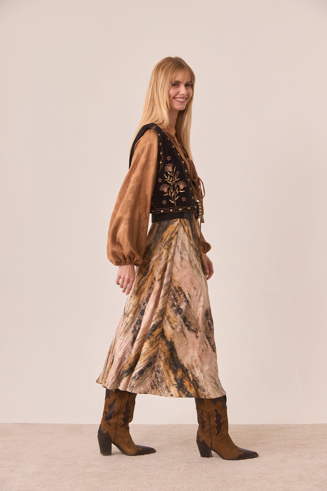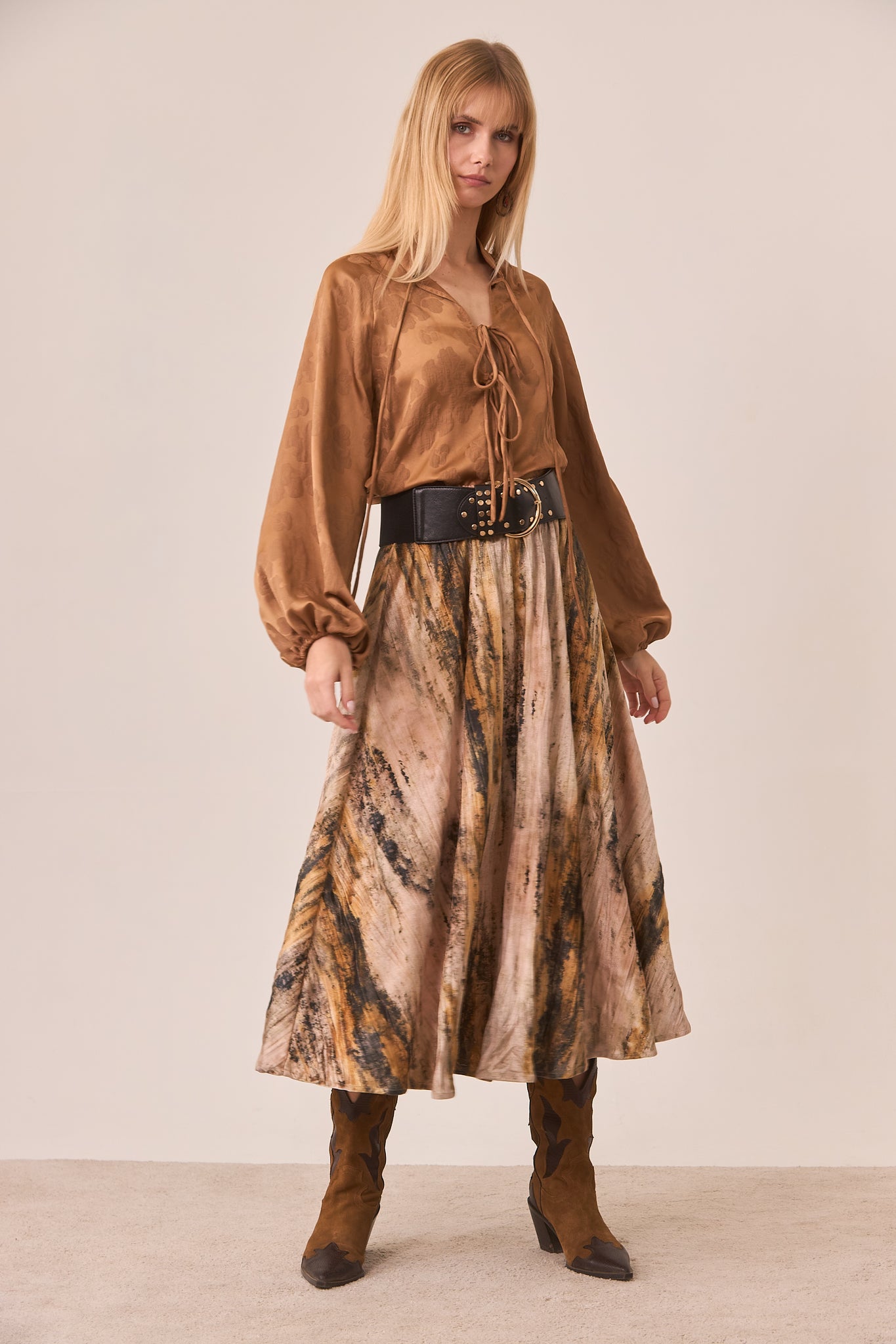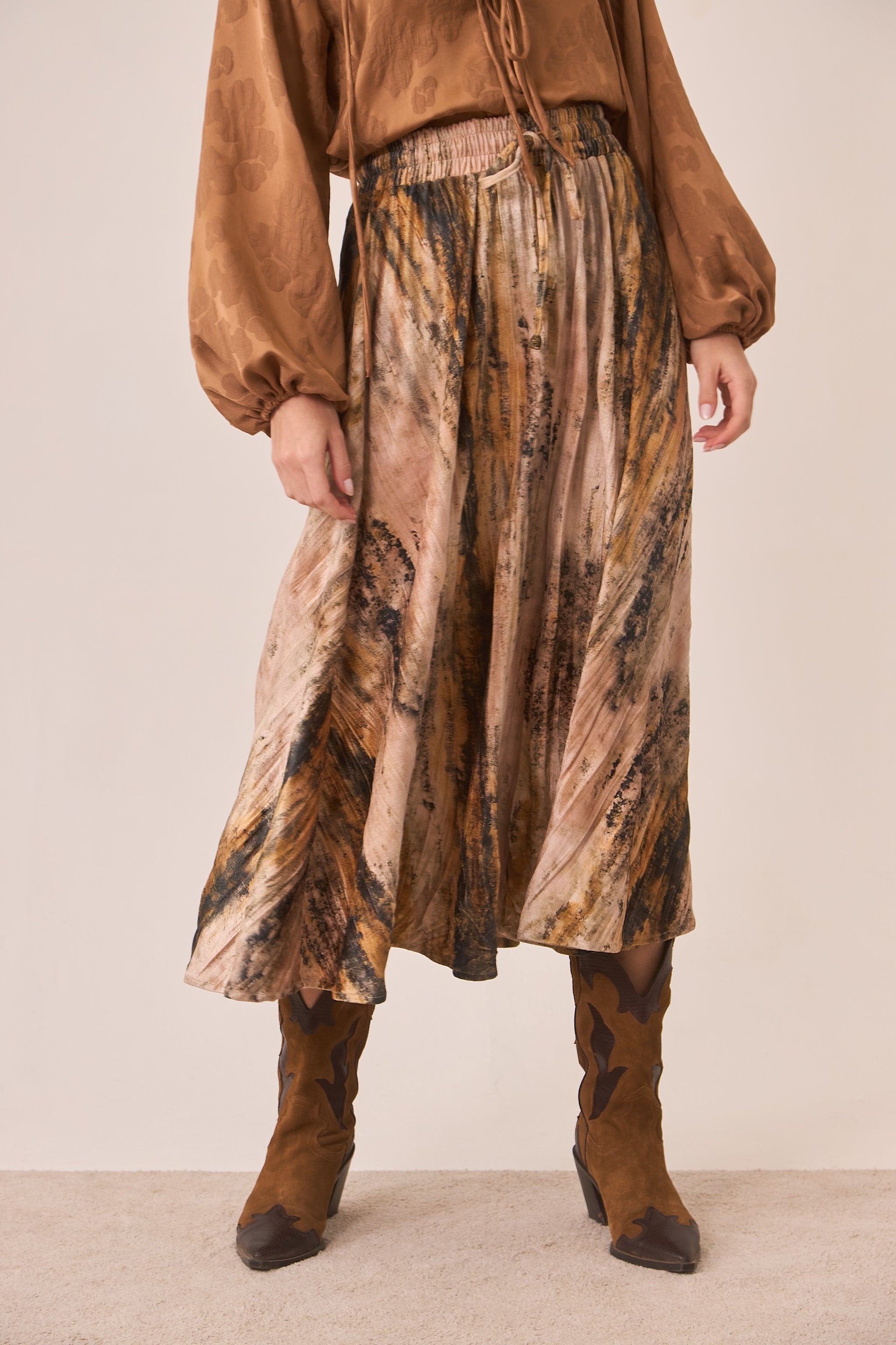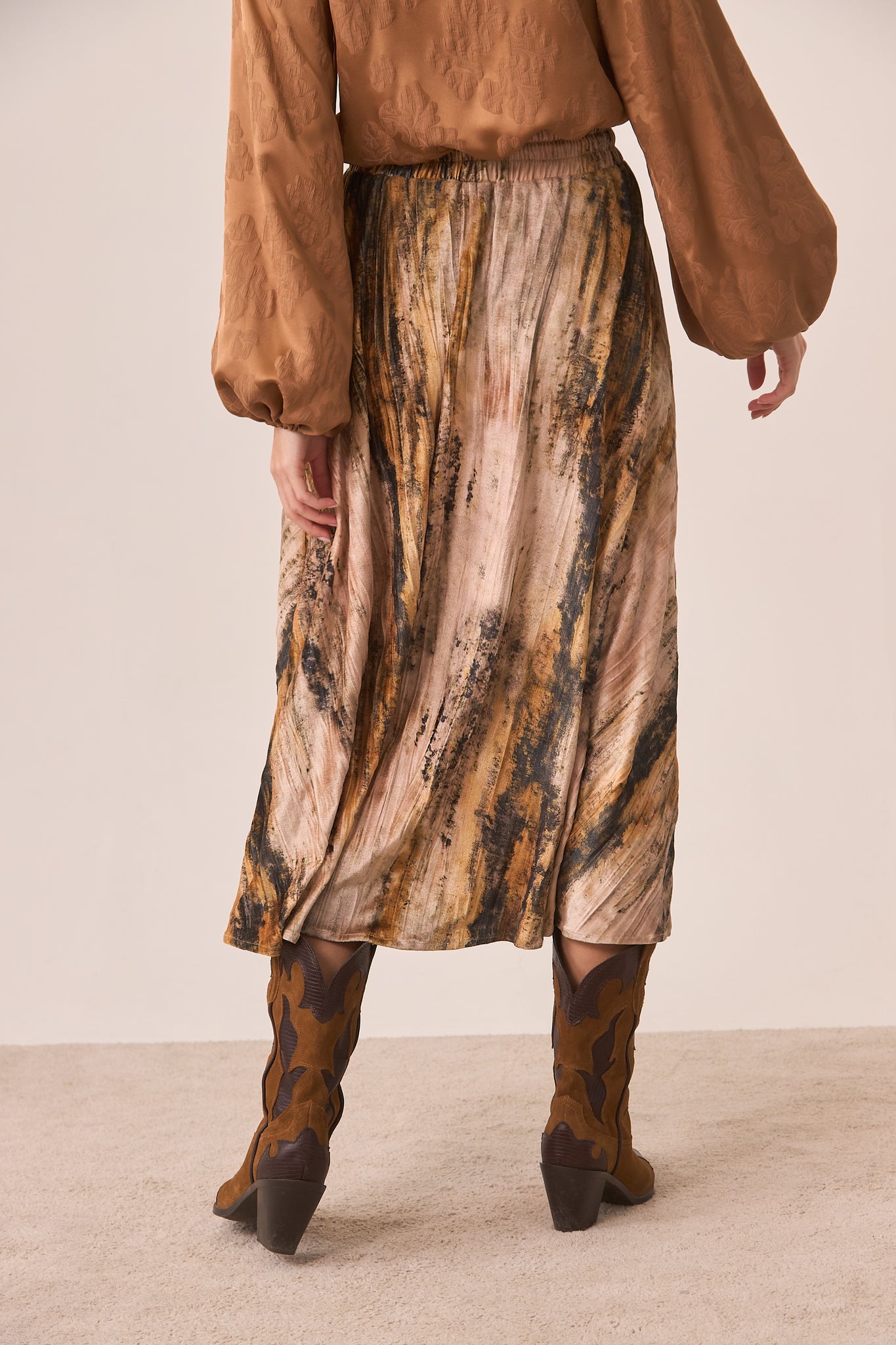 FALDA ESTAMPADO MARMOLEADO - CAMEL