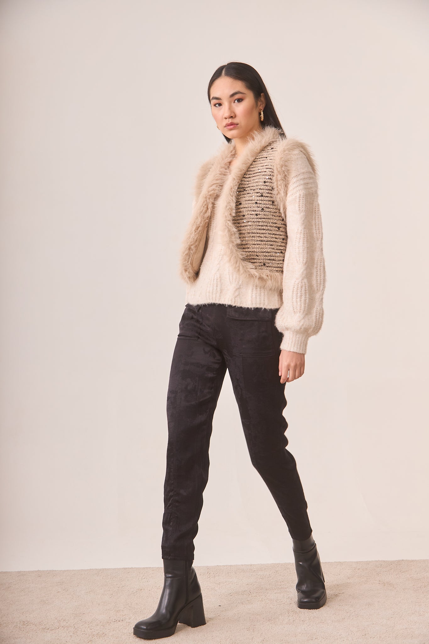 Pantalón tipo cargo en tejido estampado jacquard. Cierre de cremallera y botón. Bajo estrecho.