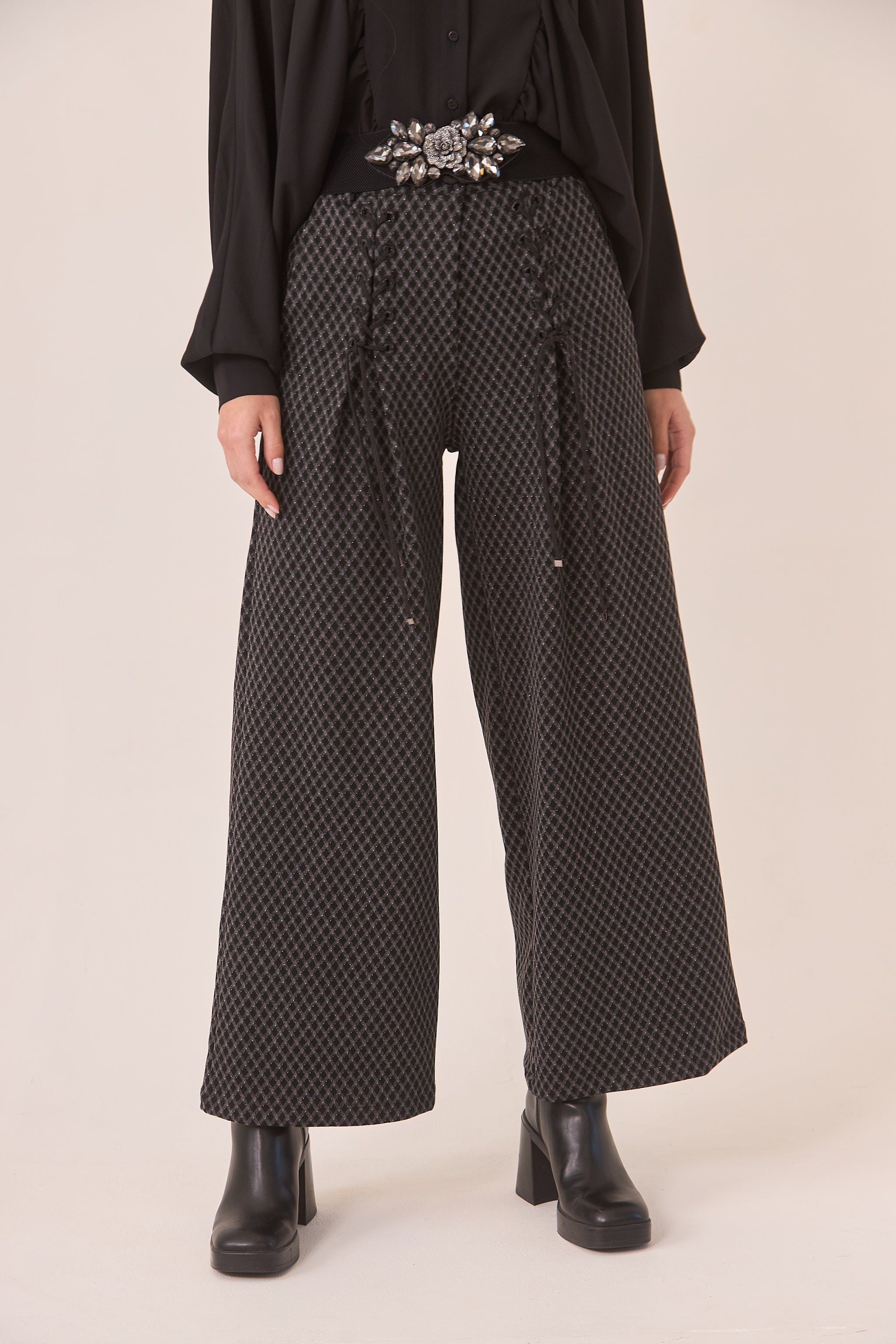PANTALÓN JACQUARD LACE UP - BLACK