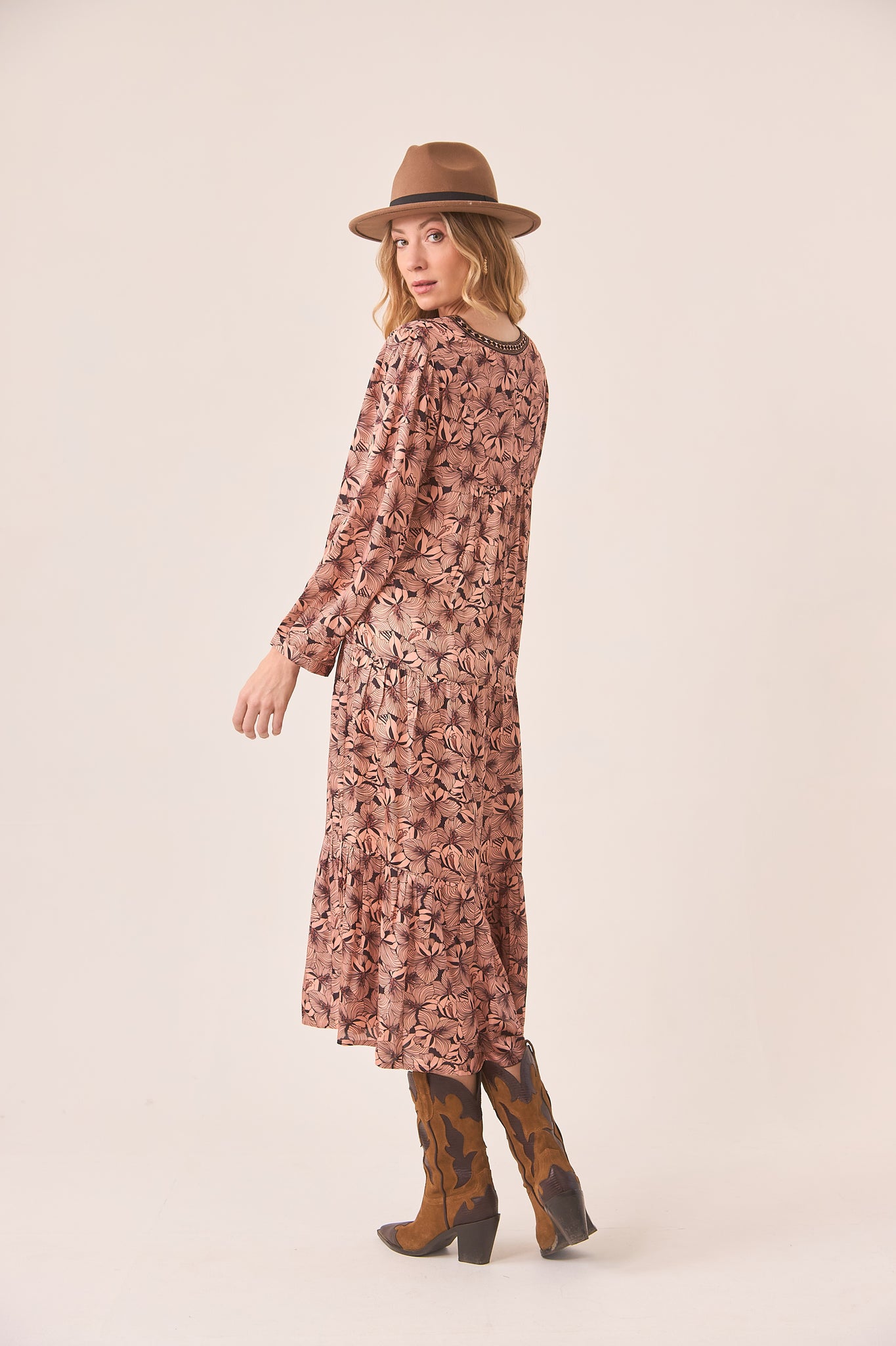 VESTIDO MIDI FLORES RETRO - PEACH
