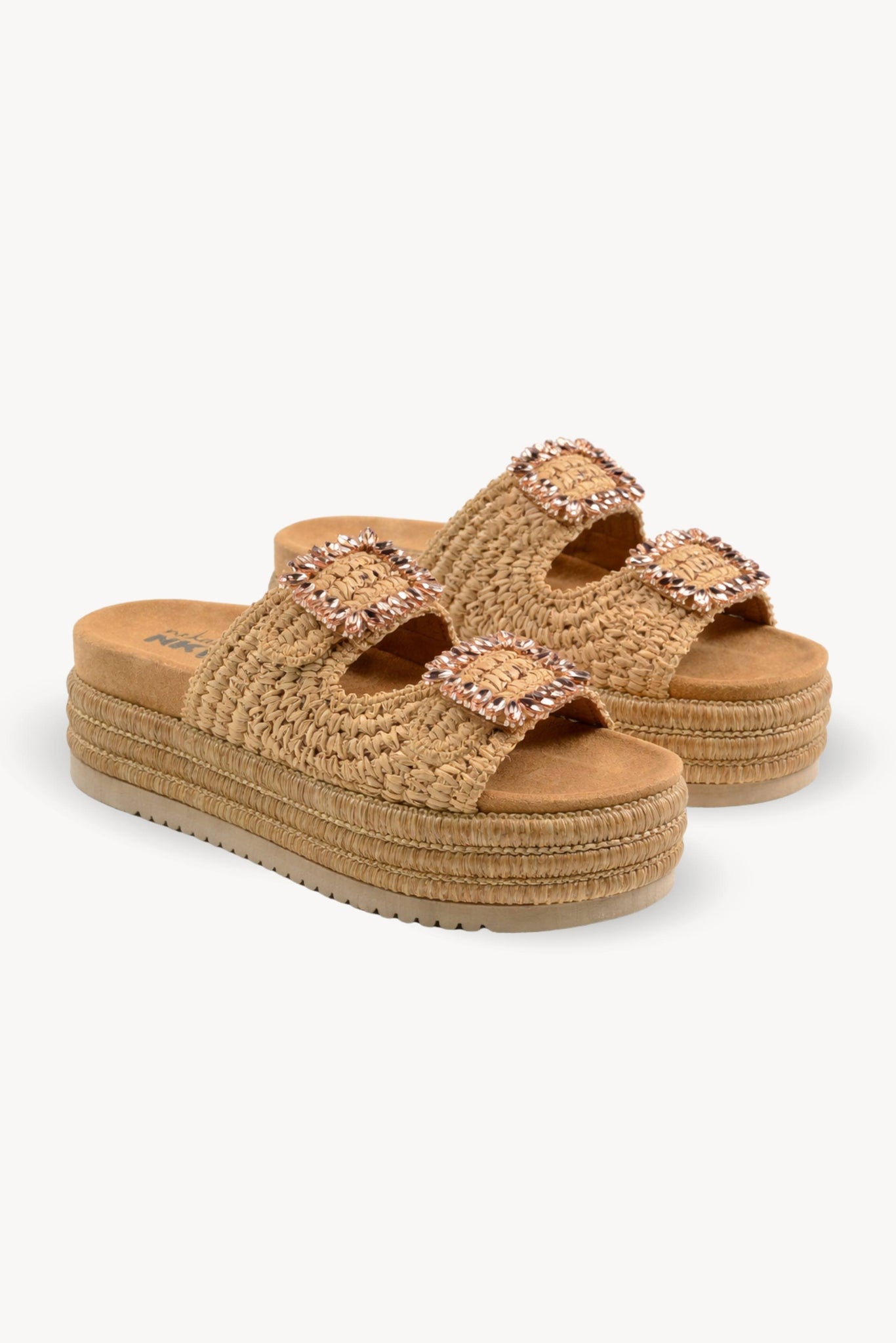 SANDALIAS DOBLE TIRA RAFIA HEBILLAS JOYA - CAMEL