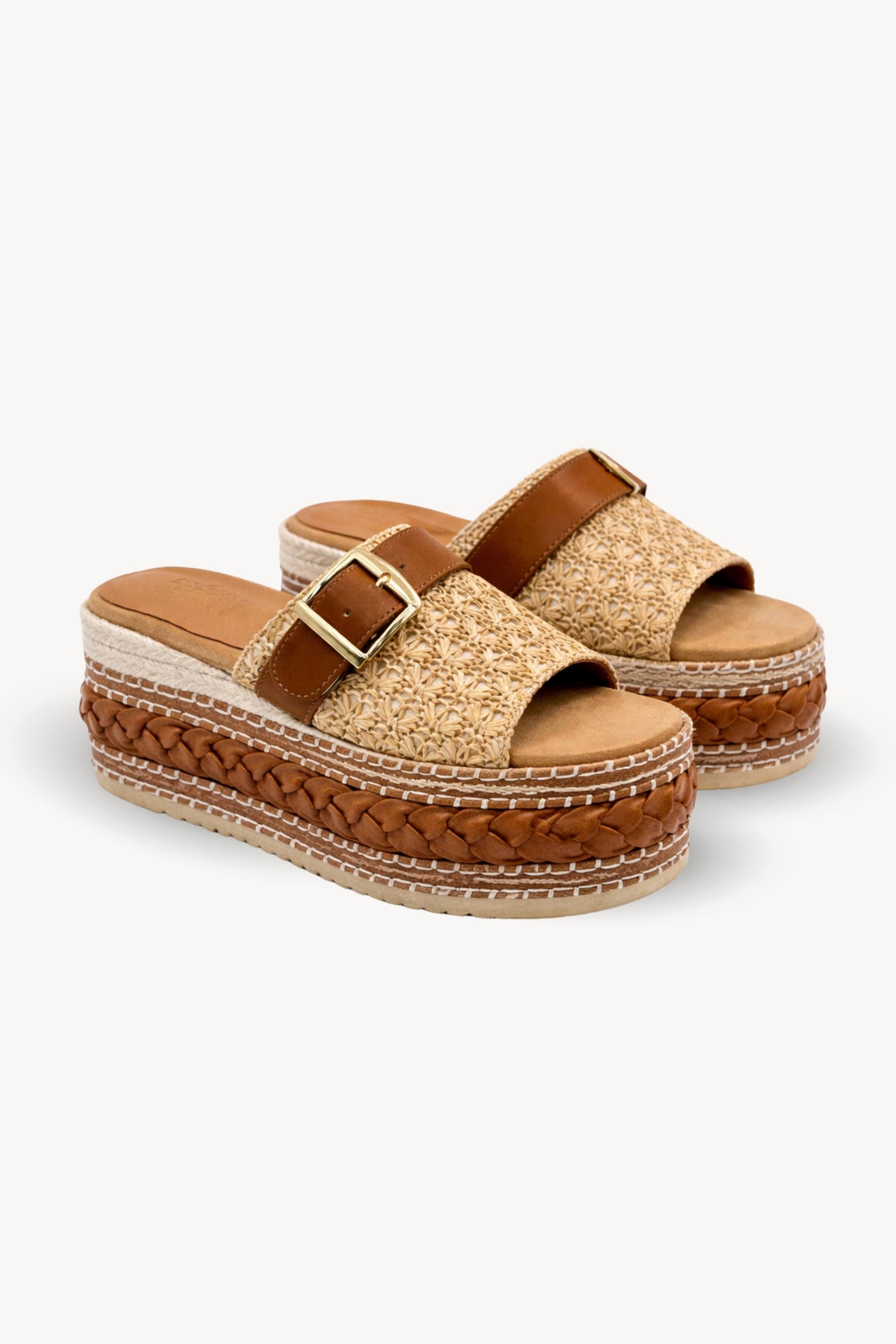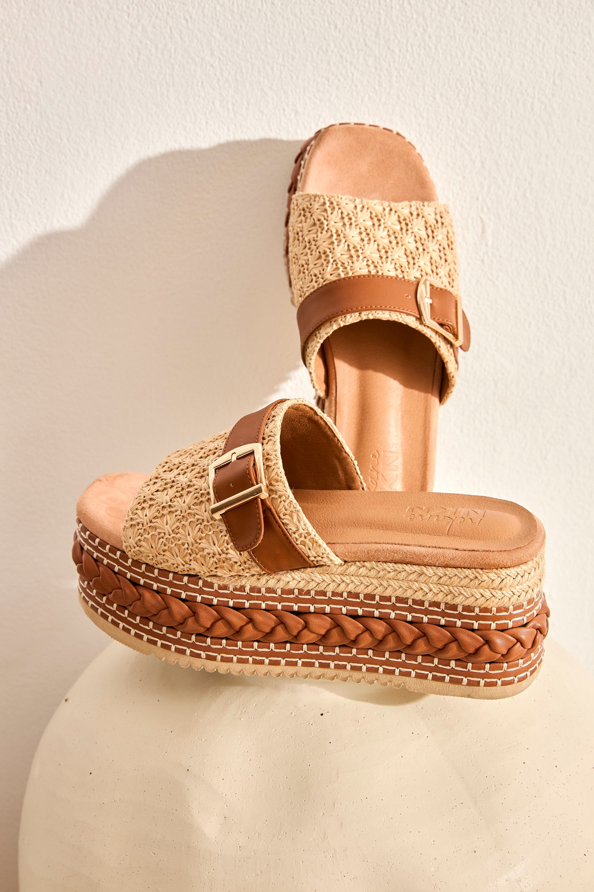 SANDALIAS PLATAFORMA RAFIA CINTA PIEL - CAMEL