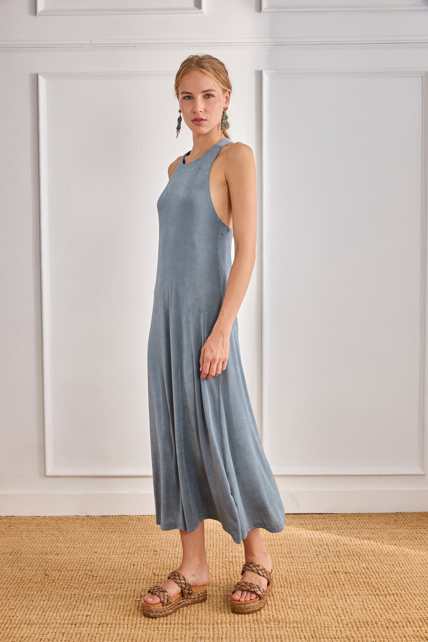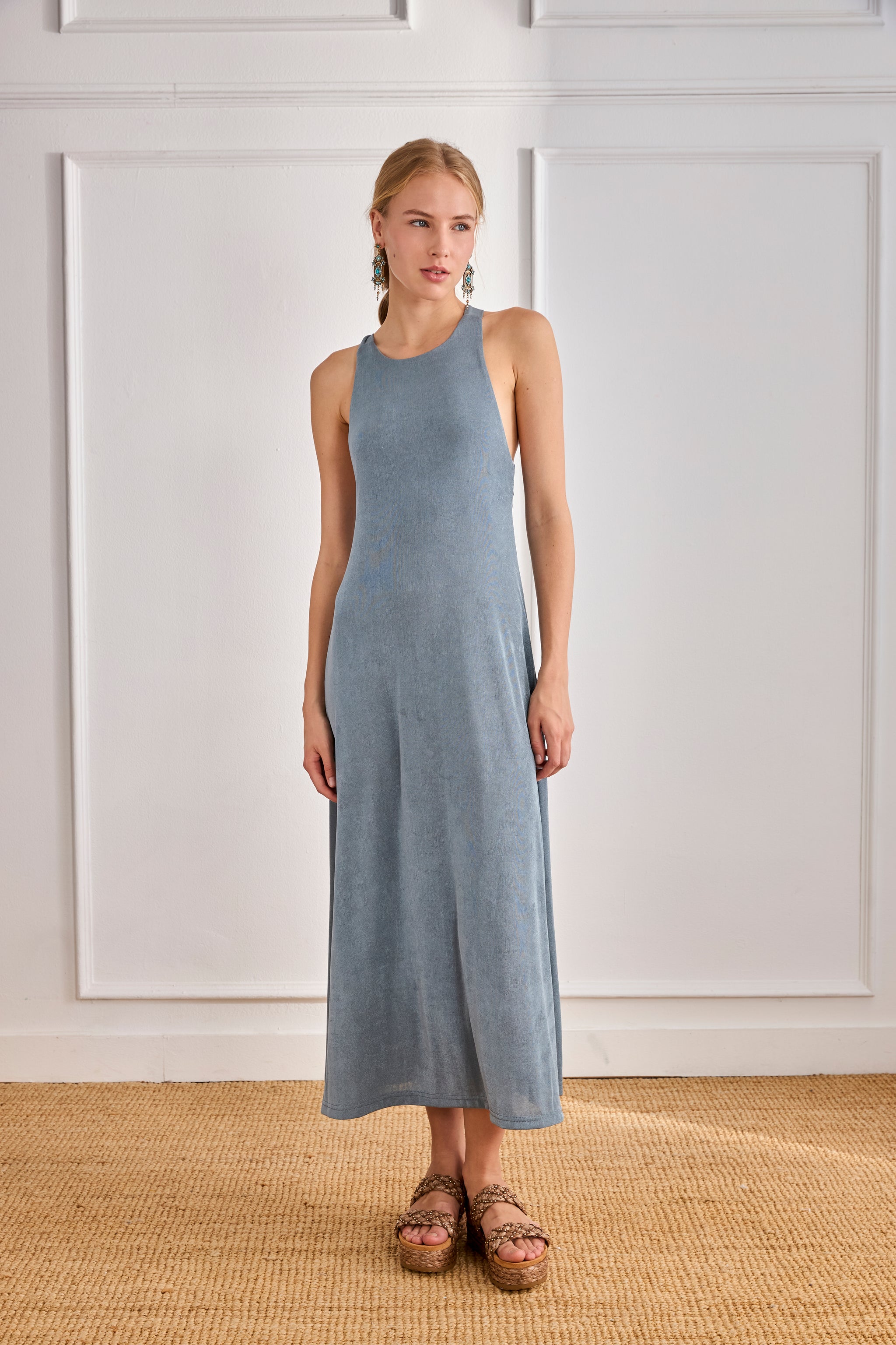 VESTIDO ESPALDA CRUZADA ANILLA - AZUL