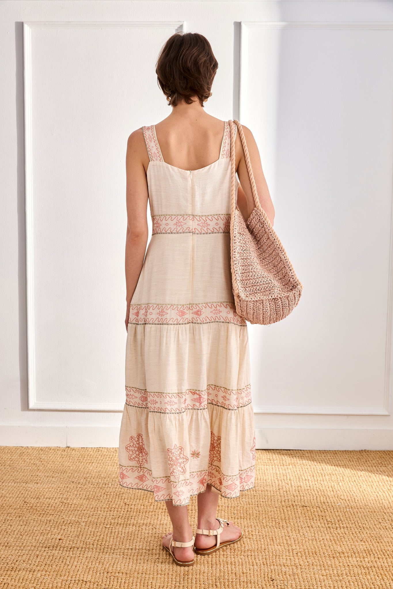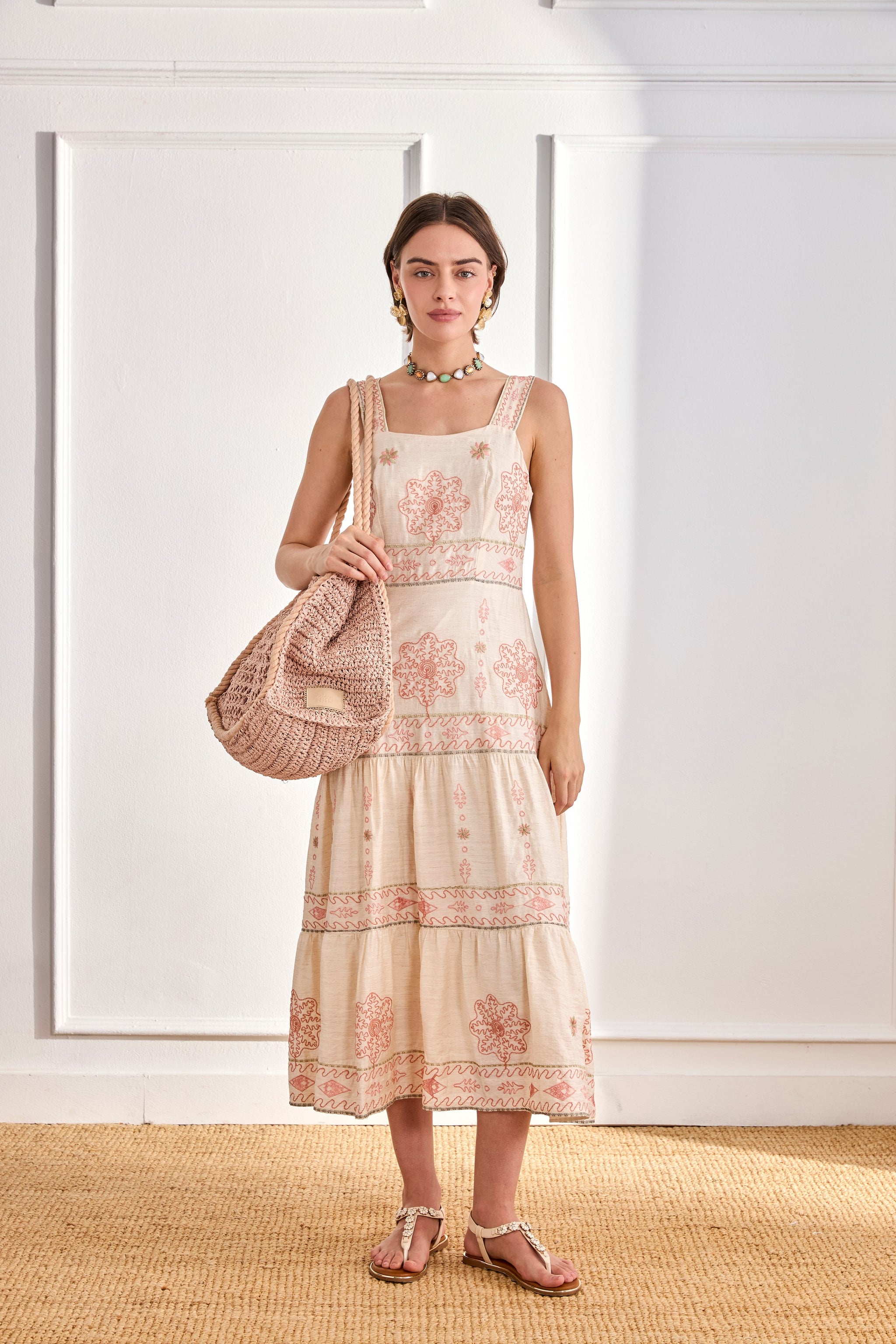 VESTIDO FLORES BORDADAS MULTICOLOR - CRUDO