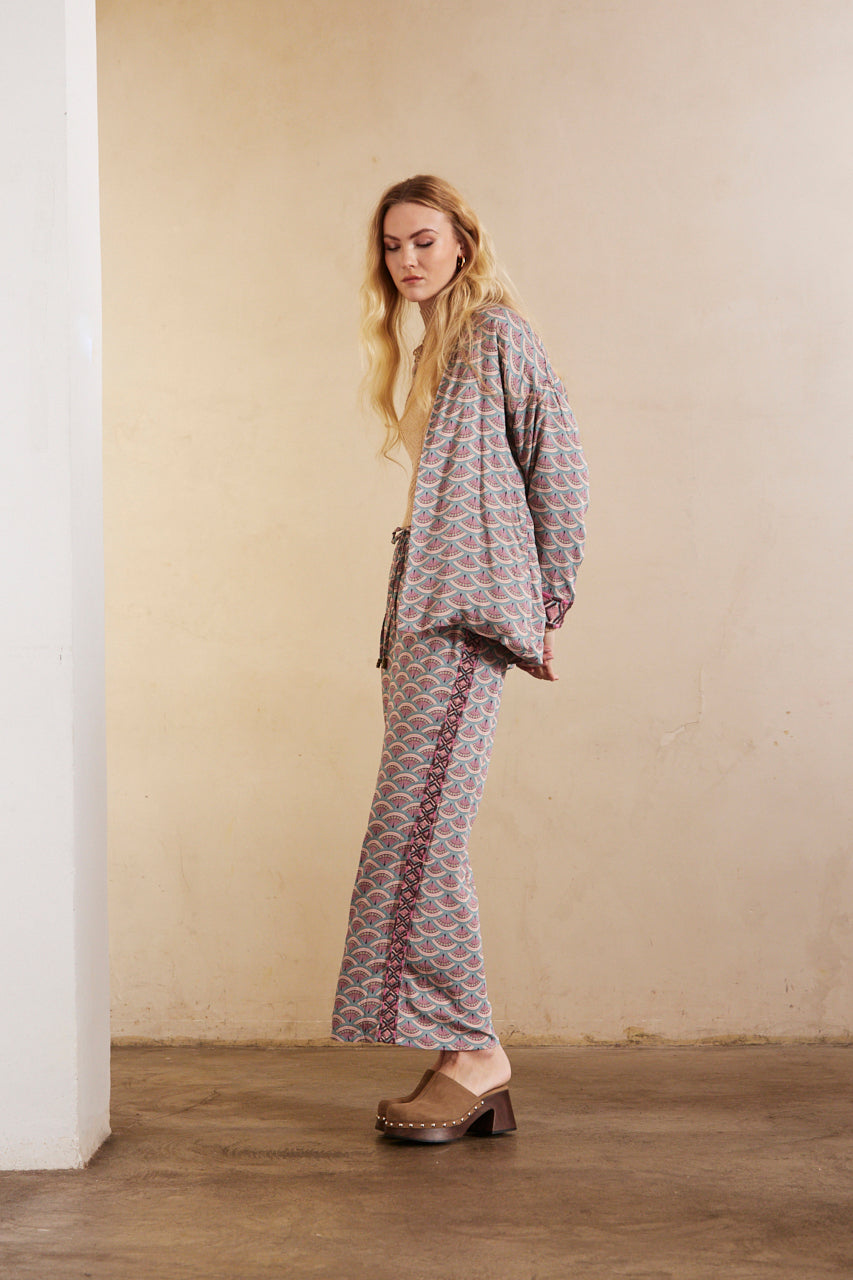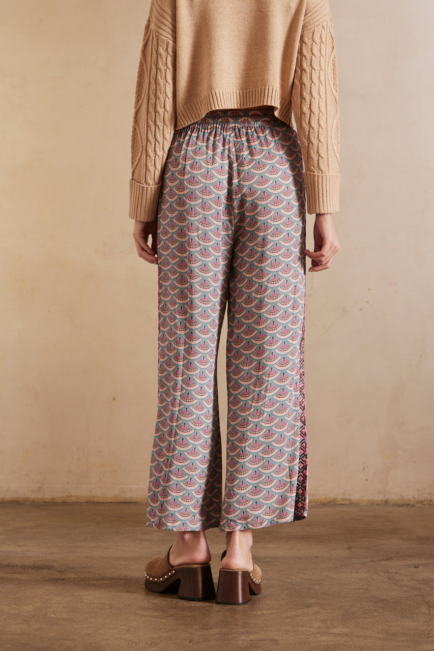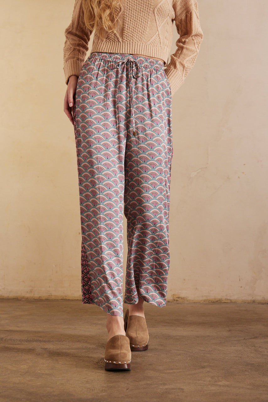 PRINTED FLUID STRAIGHT PANTS WITH EMBROIDERY - ROSE