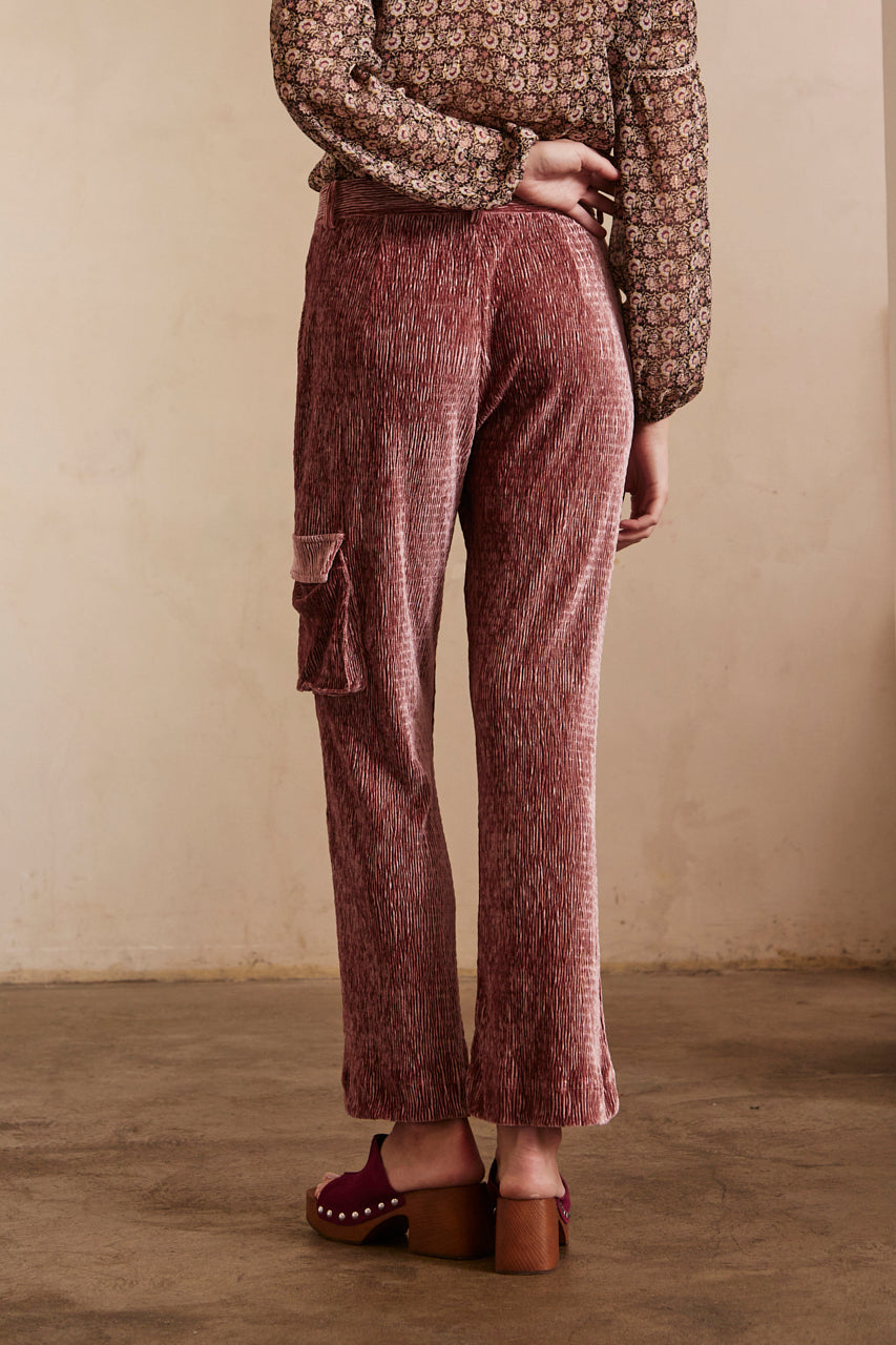 STRAIGHT FIT CARGO PANTS IN VELVET - ROSE