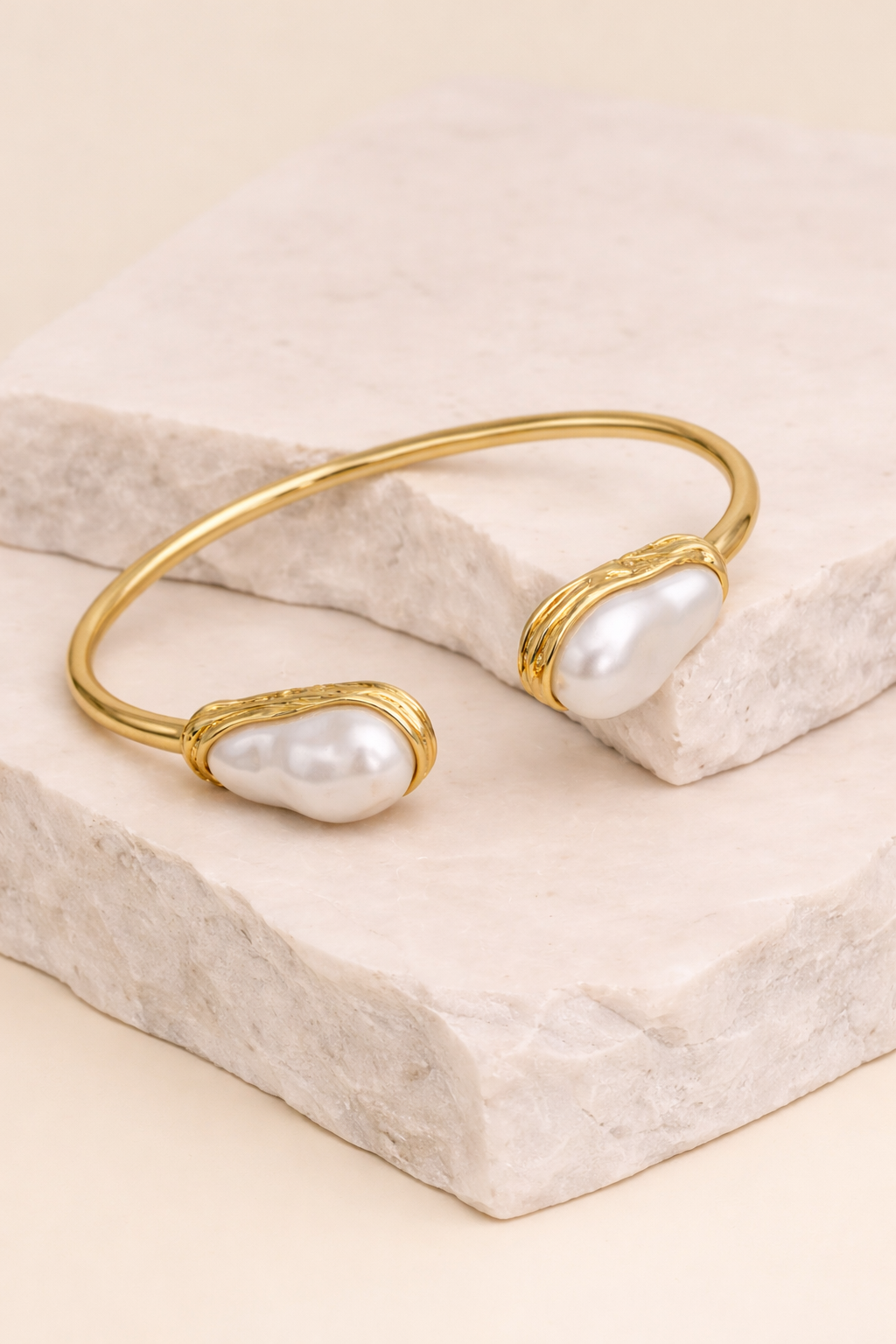 RIGID BRACELET WITH BAROQUE PEARLS - WHITE