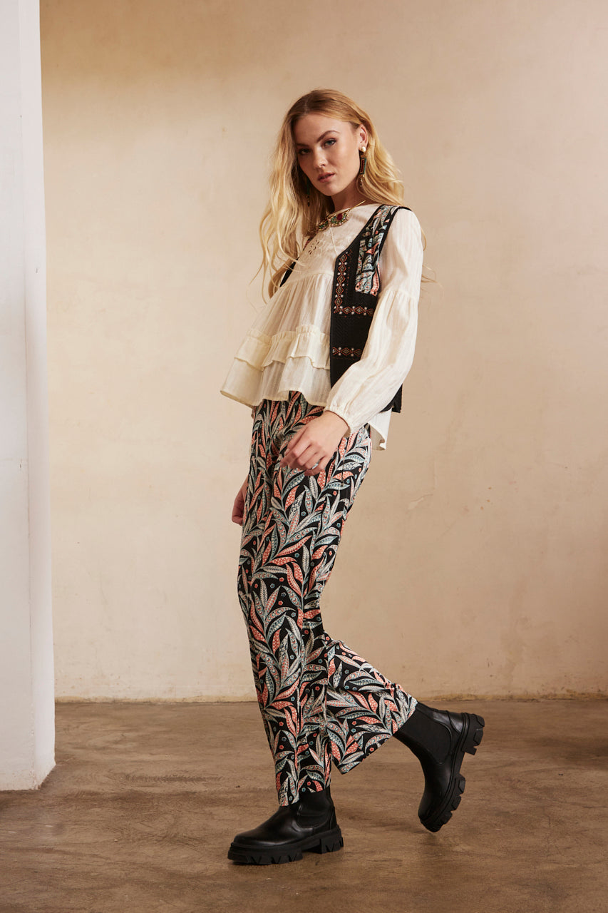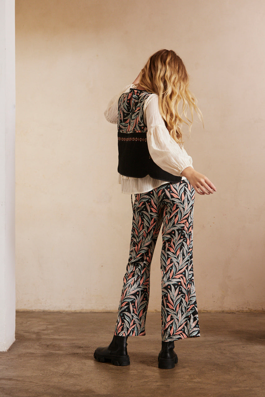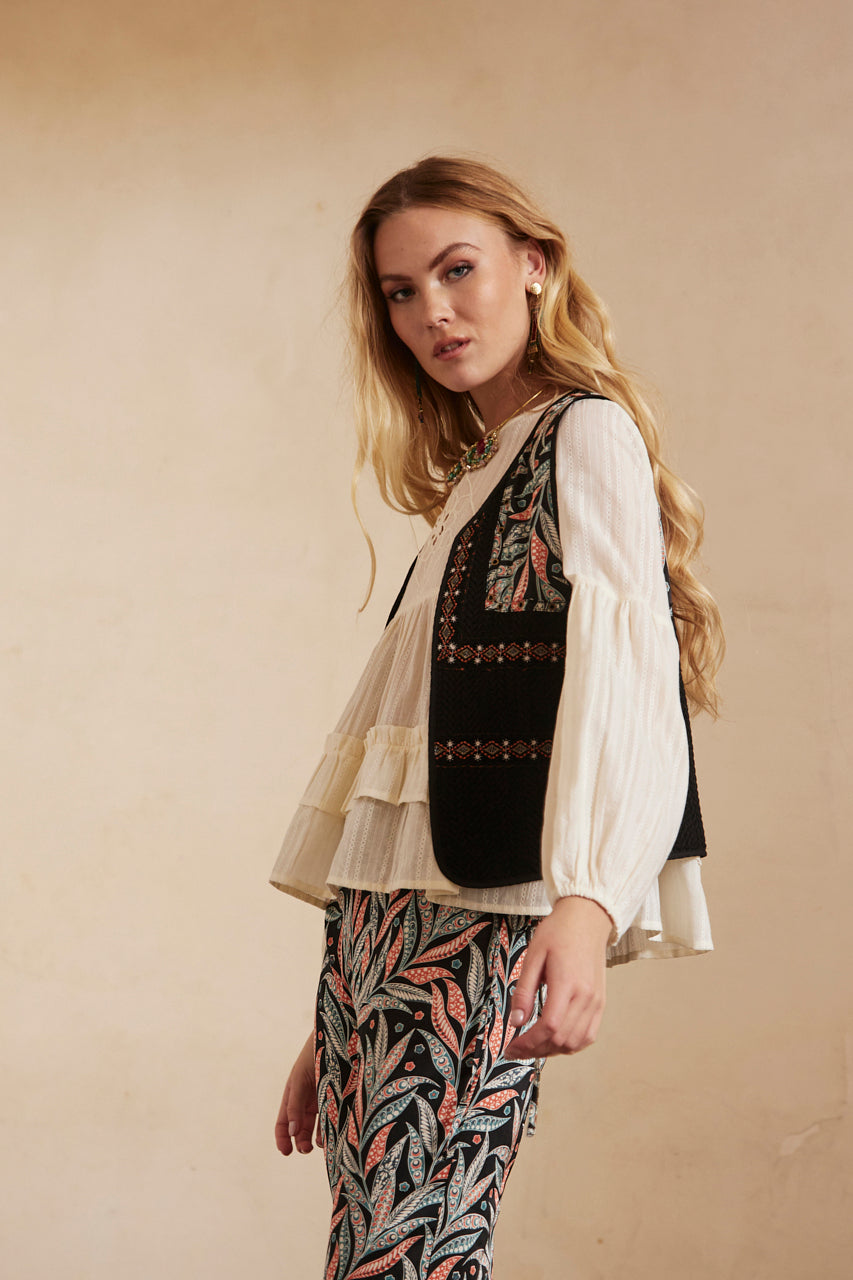 JACQUARD VEST WITH EMBROIDERED RIBBONS - BLACK