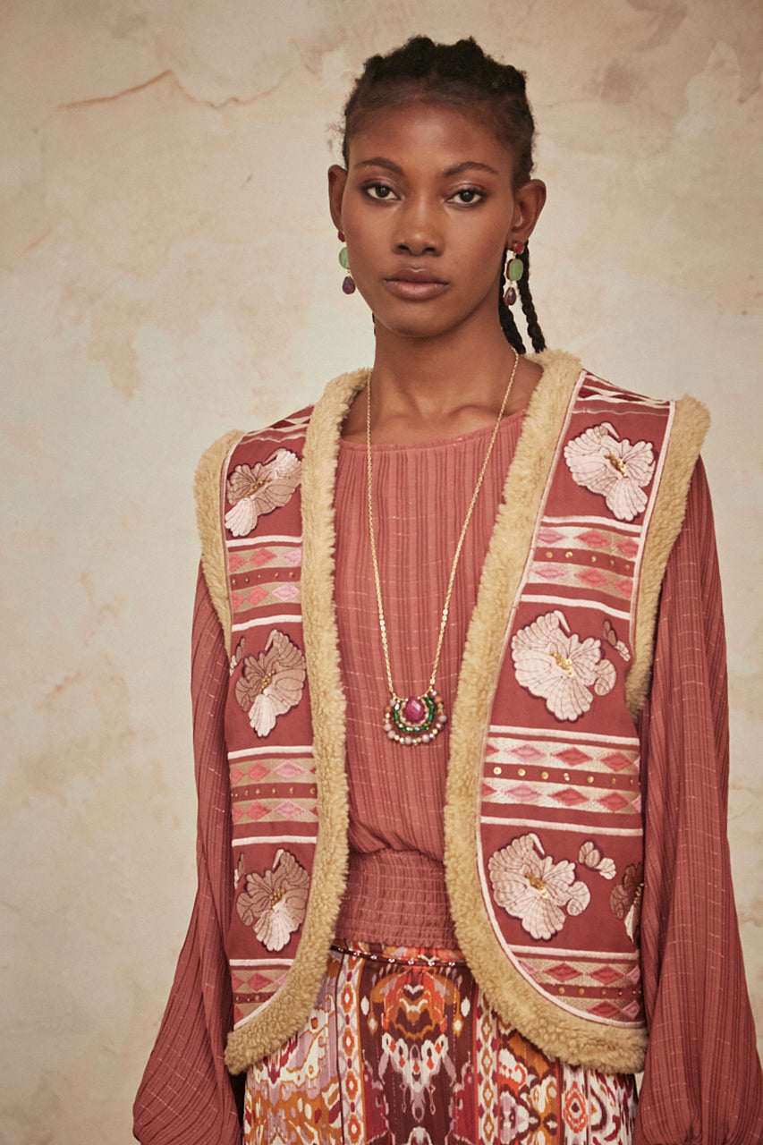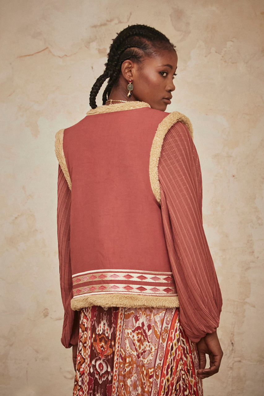 EMBROIDERED VEST WITH SHEEPSKIN - ROSE