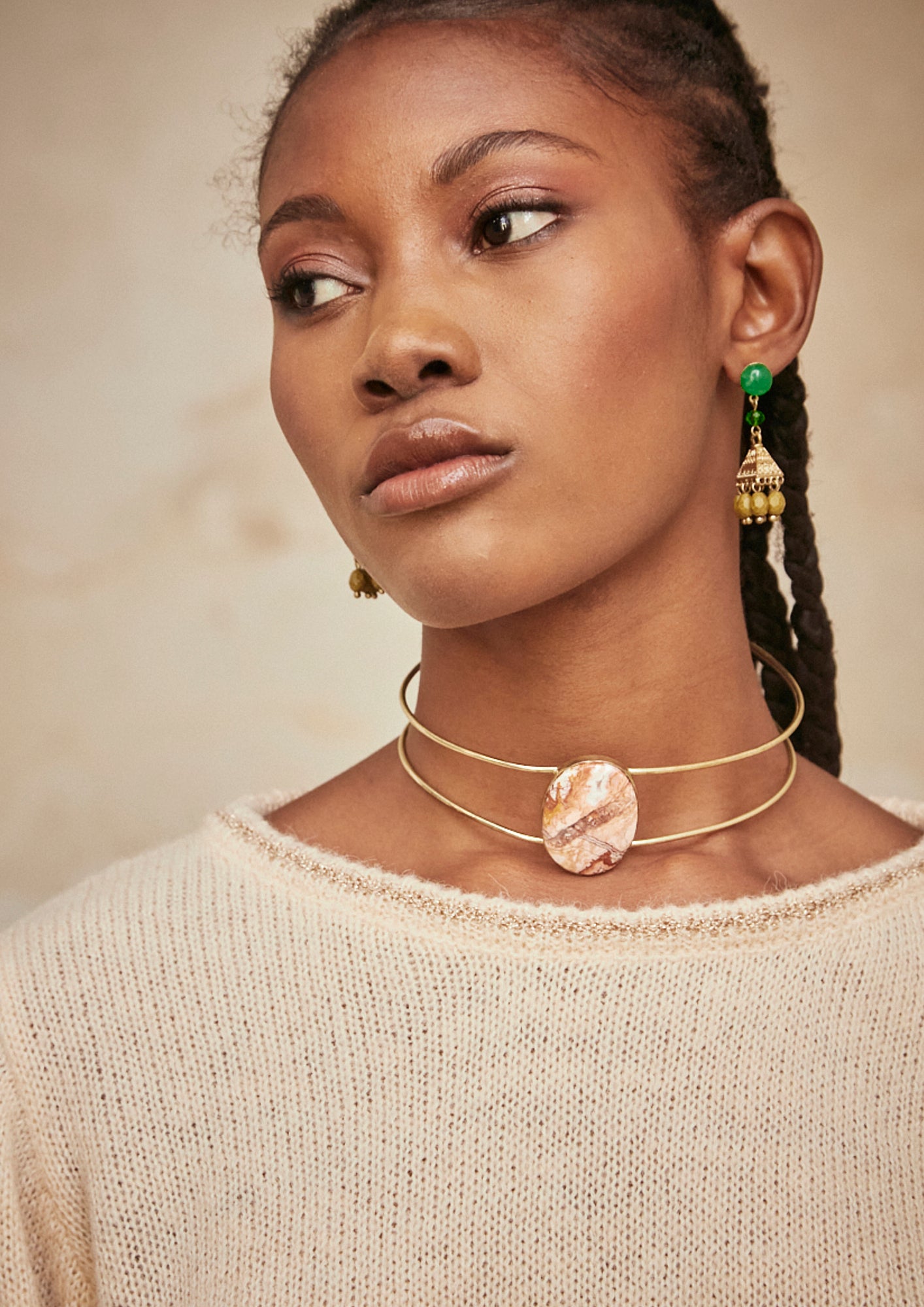 CHOCKER WITH NATURAL STONE BROWN - CAMEL