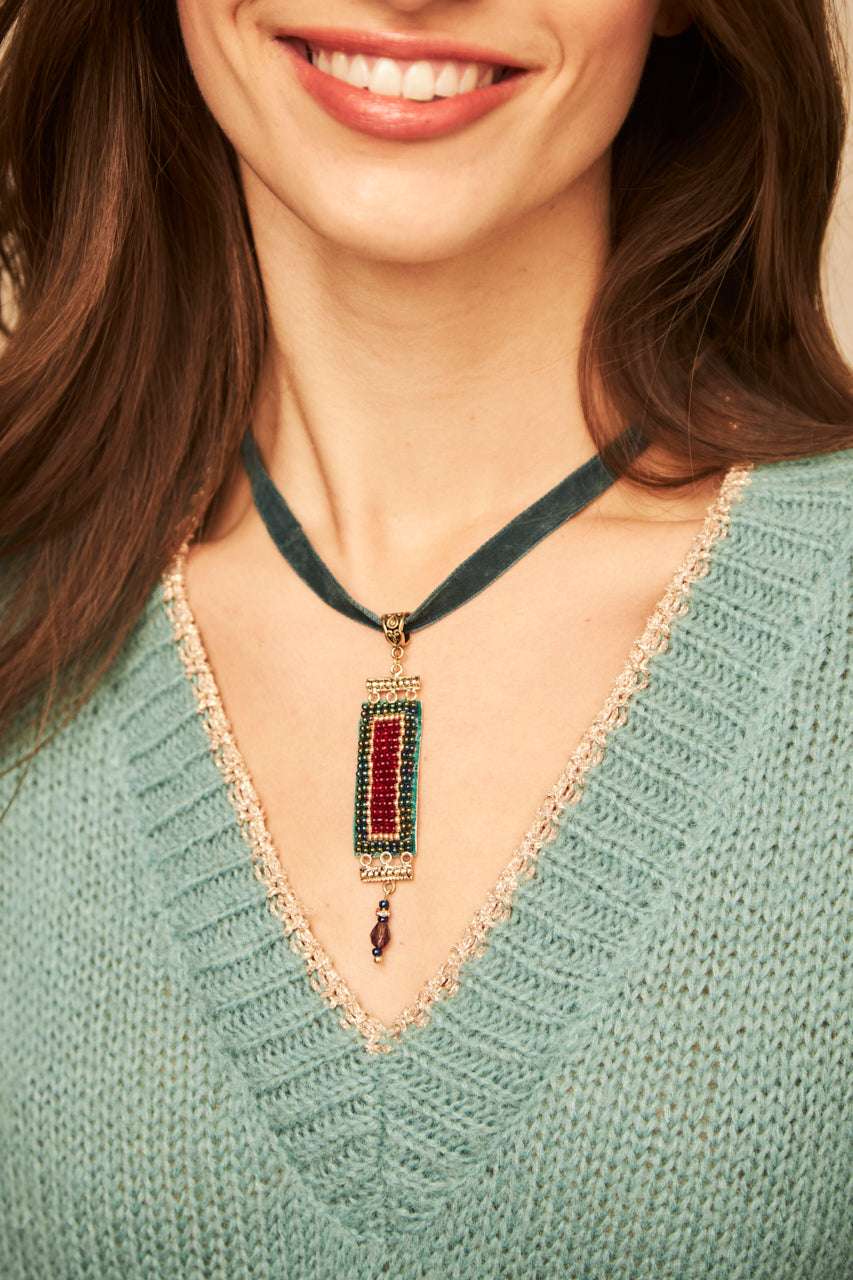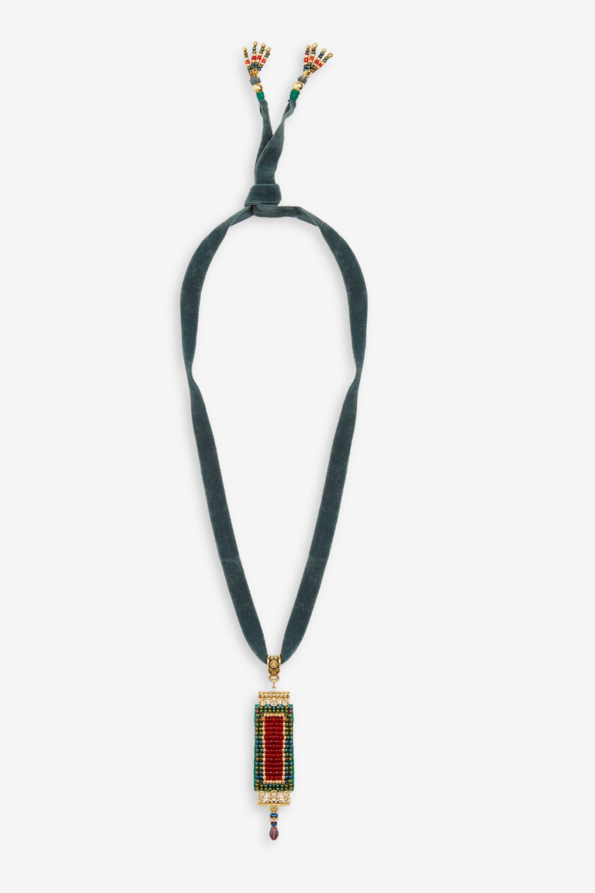 Velvet ribbon choker with beads. Adjustable ribbon closure.
