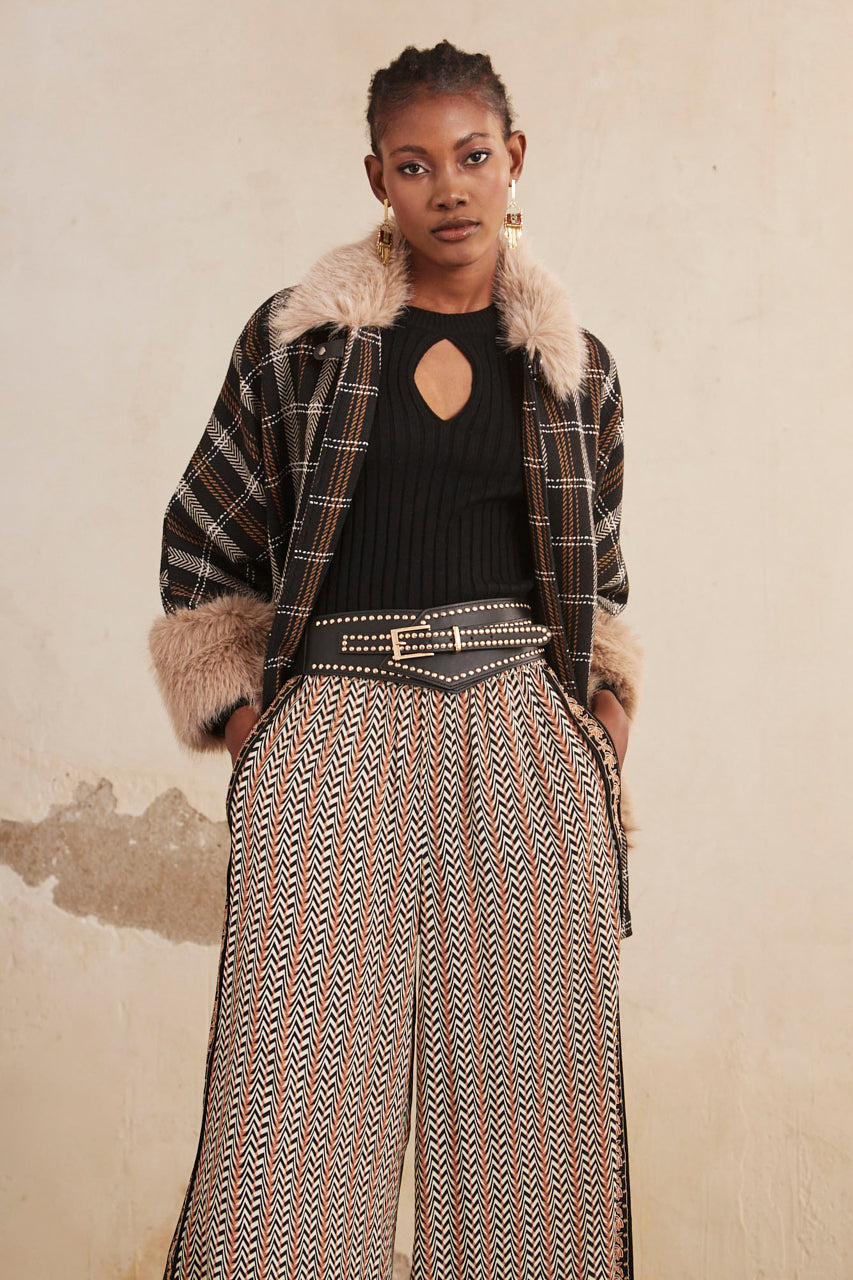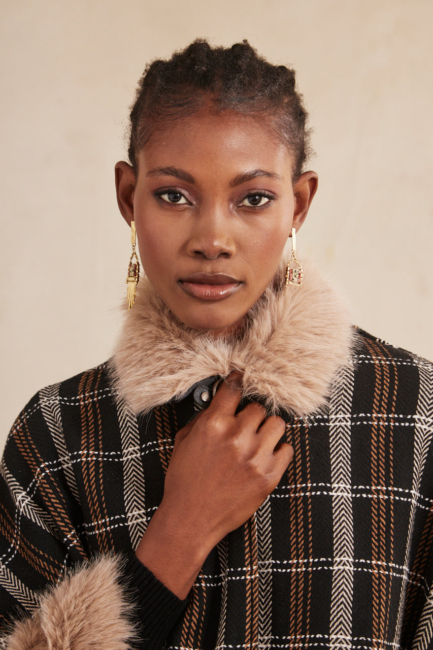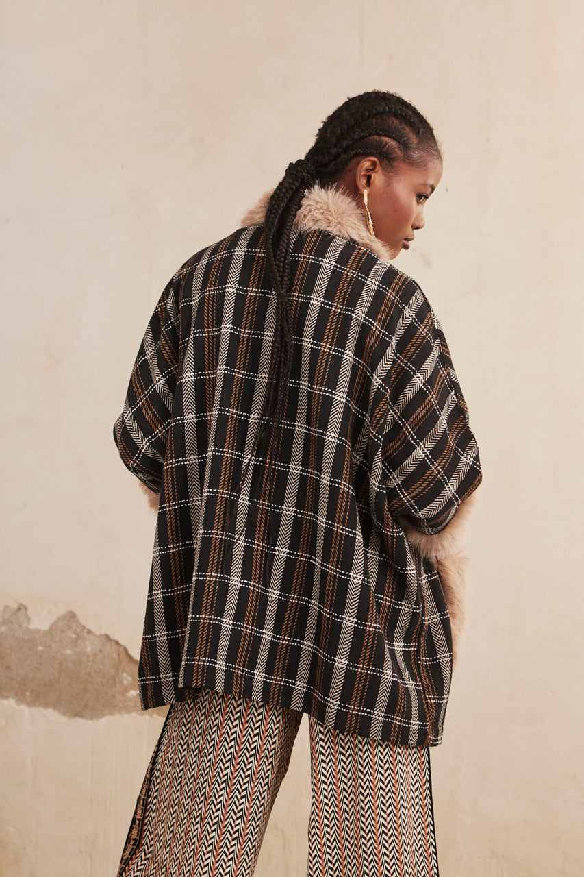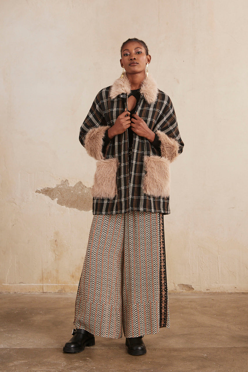 CAPE WITH FUR CUFFS AND COLLAR - BLACK
