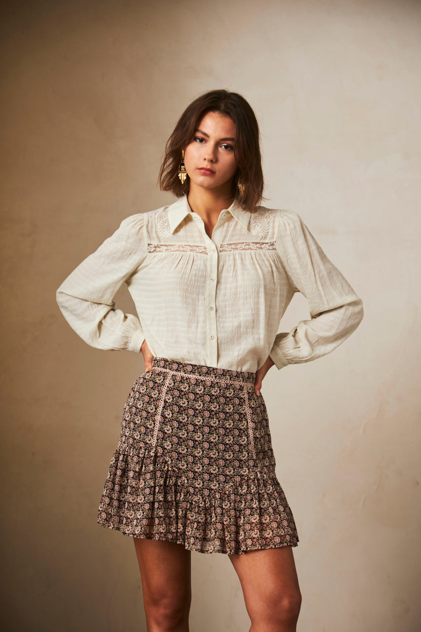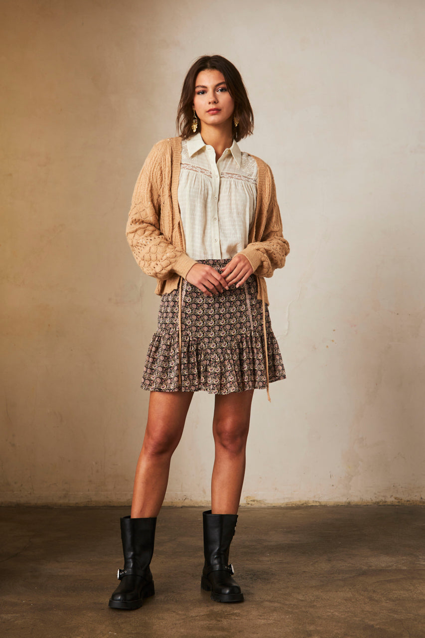 PRINTED SHORT SKIRT WITH RUFFLE HEM - BLACK
