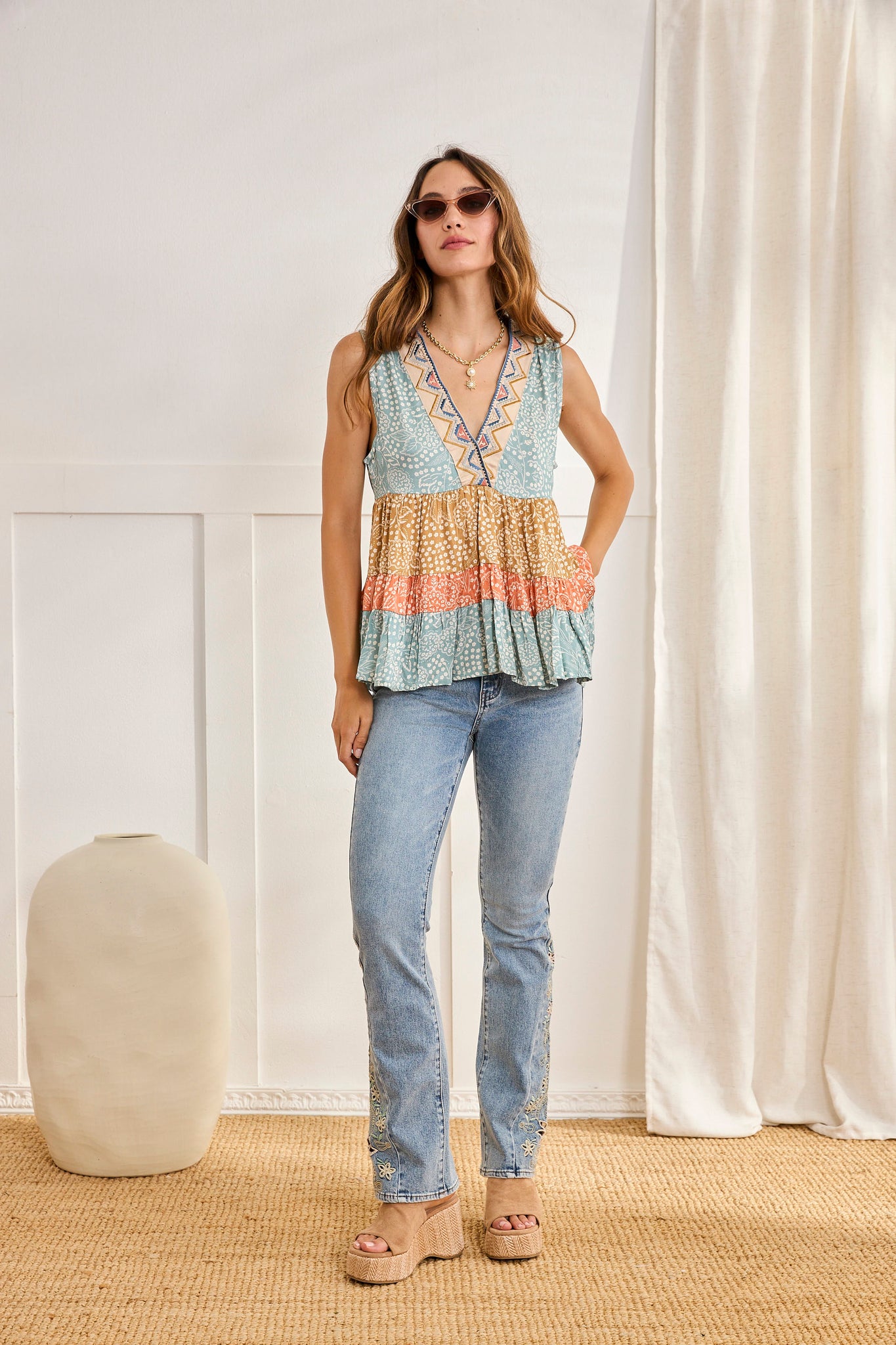 STRIPED PRINTED TOP - BLUE