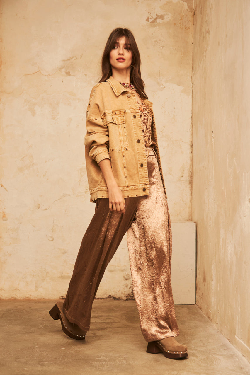 PALAZZO PANTS WITH PLEATS - CAMEL