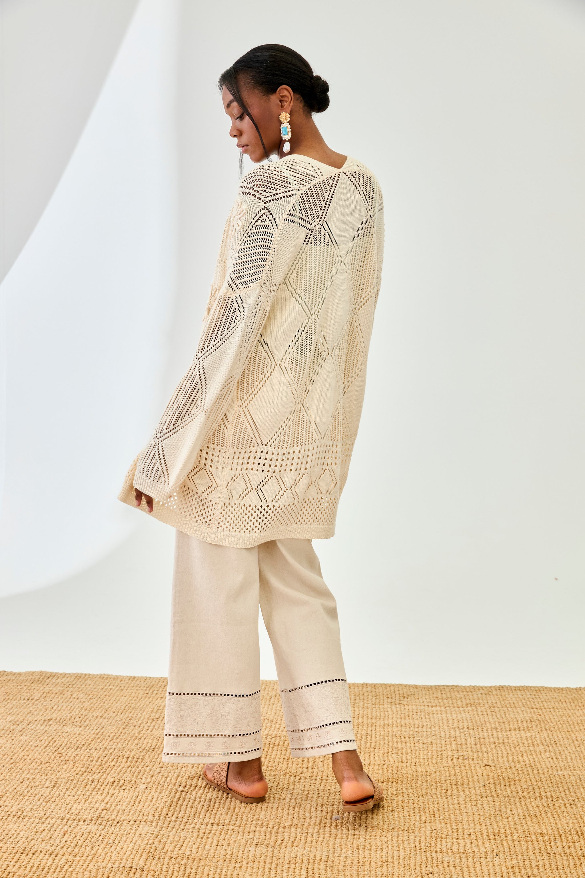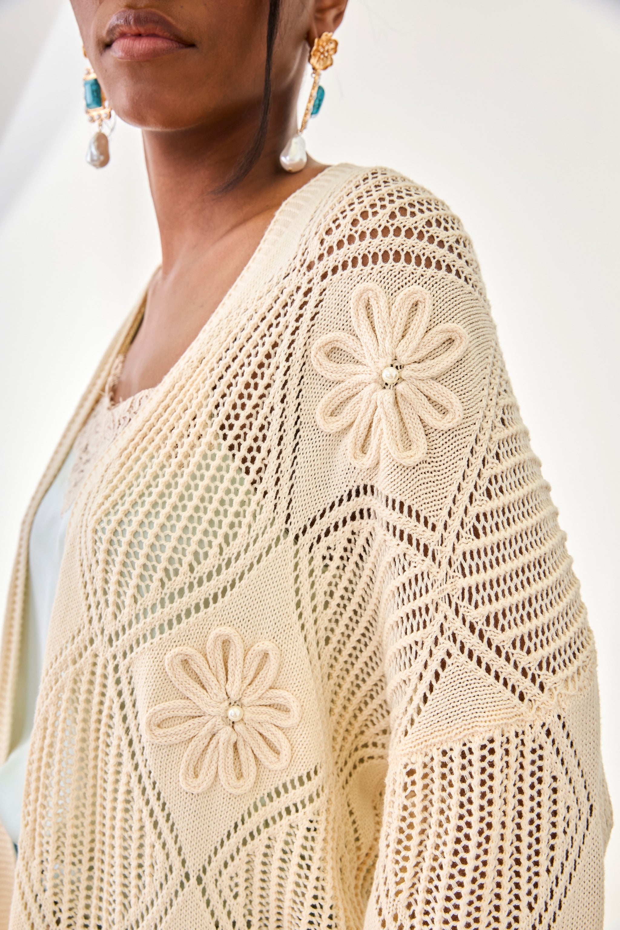 FASHIONED FLORAL CARDIGAN WITH PEARL - RAW