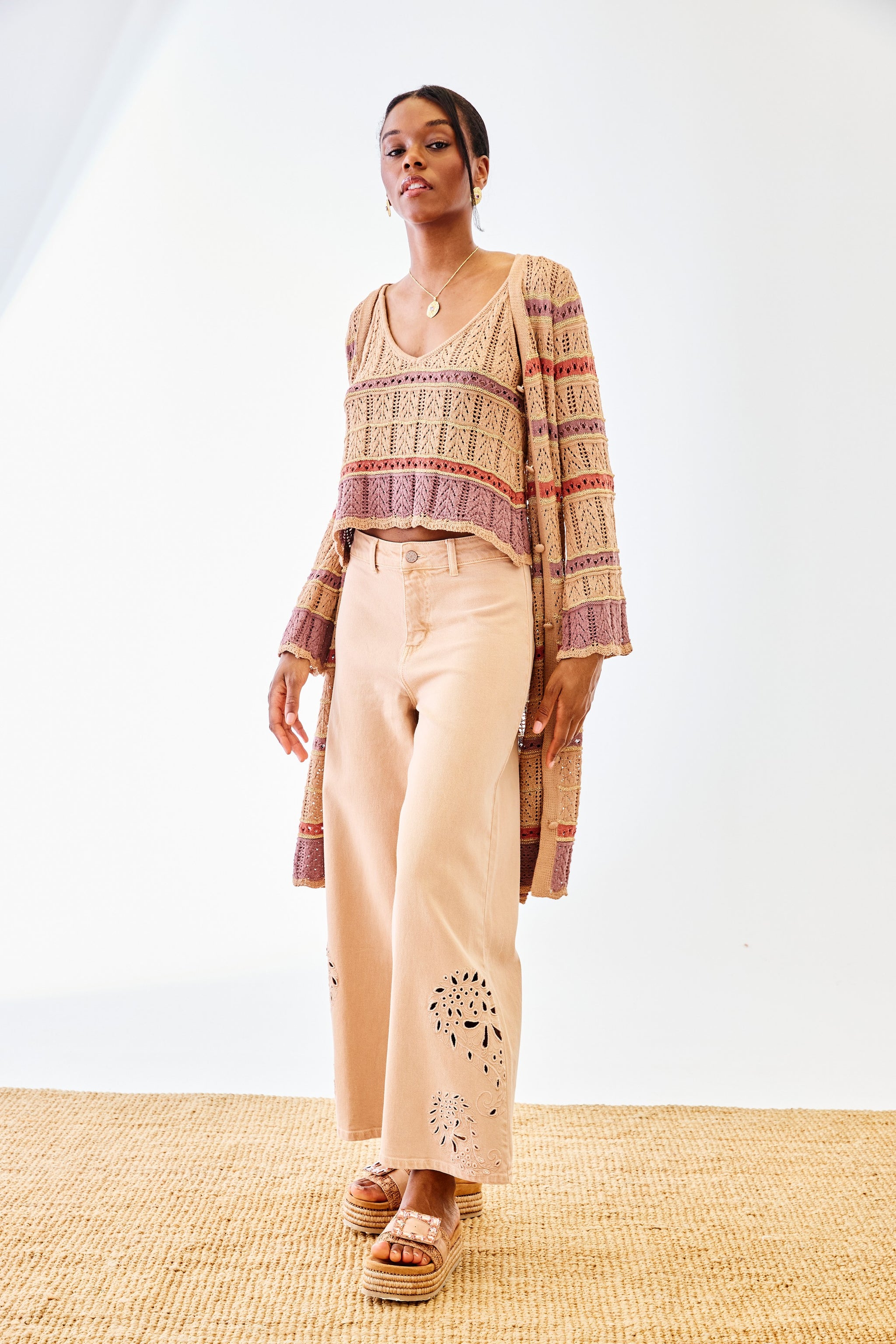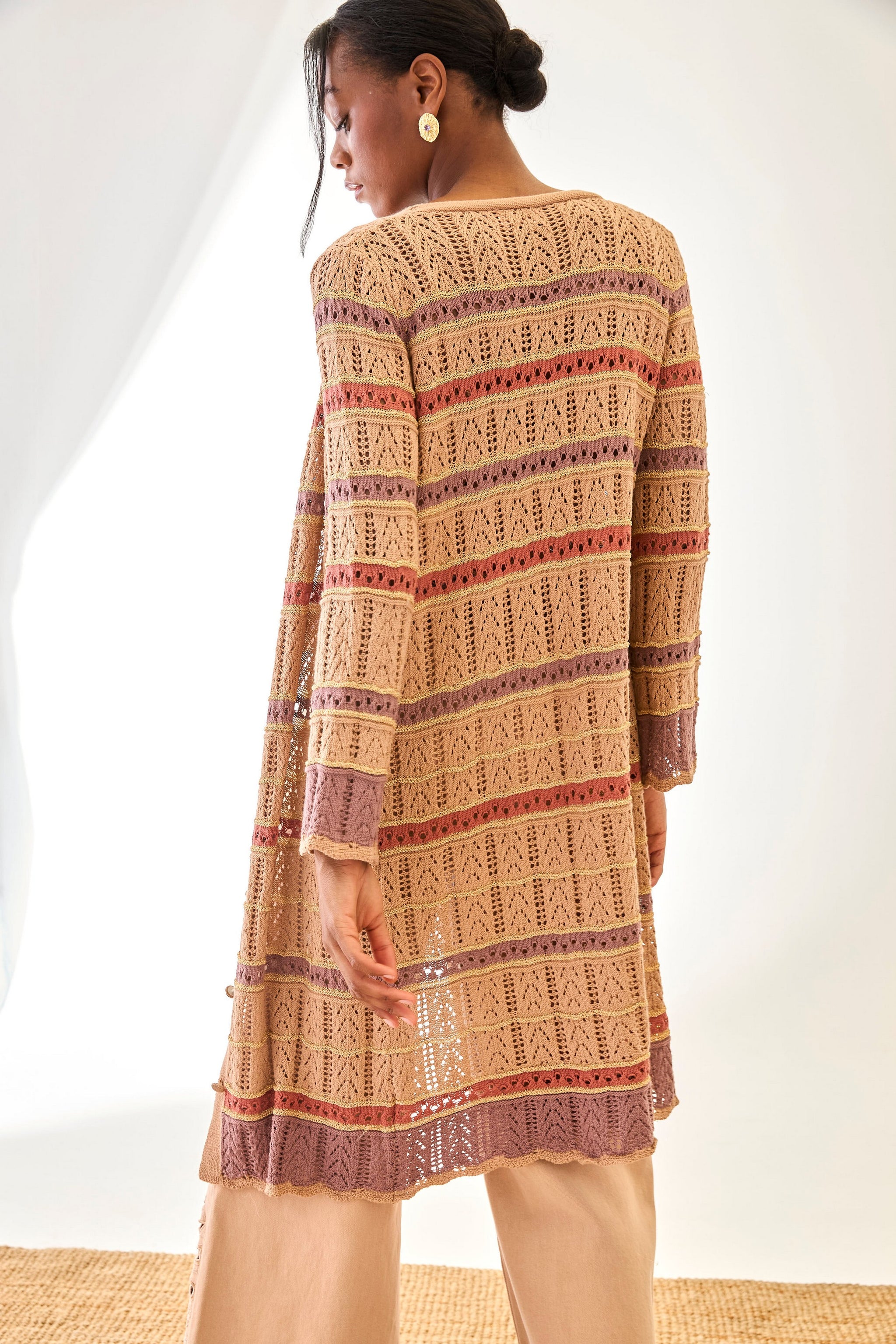 TRICOLOR OPEN KNIT CARDIGAN - CAMEL