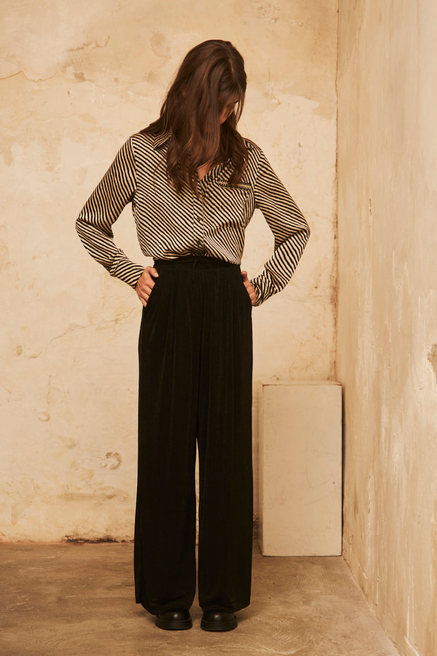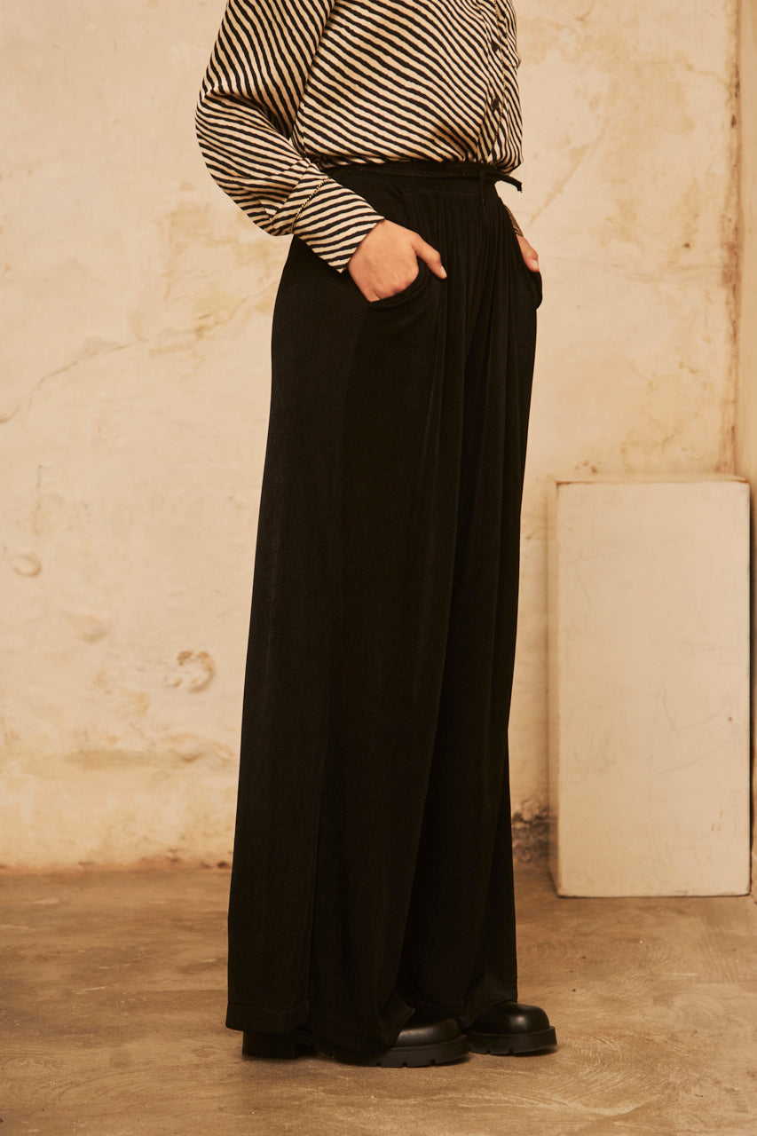 Wide-legged knit trousers with lurex - black