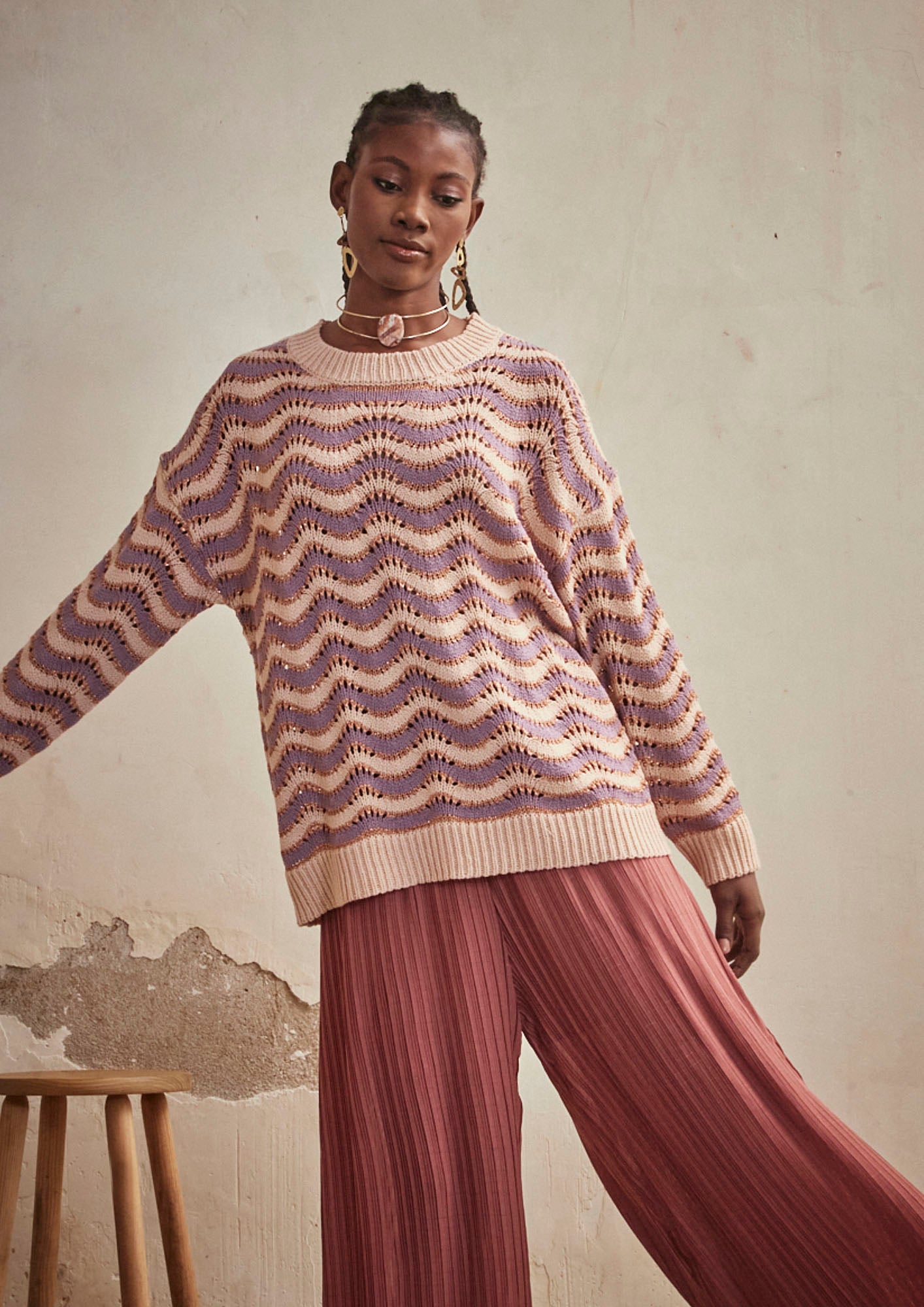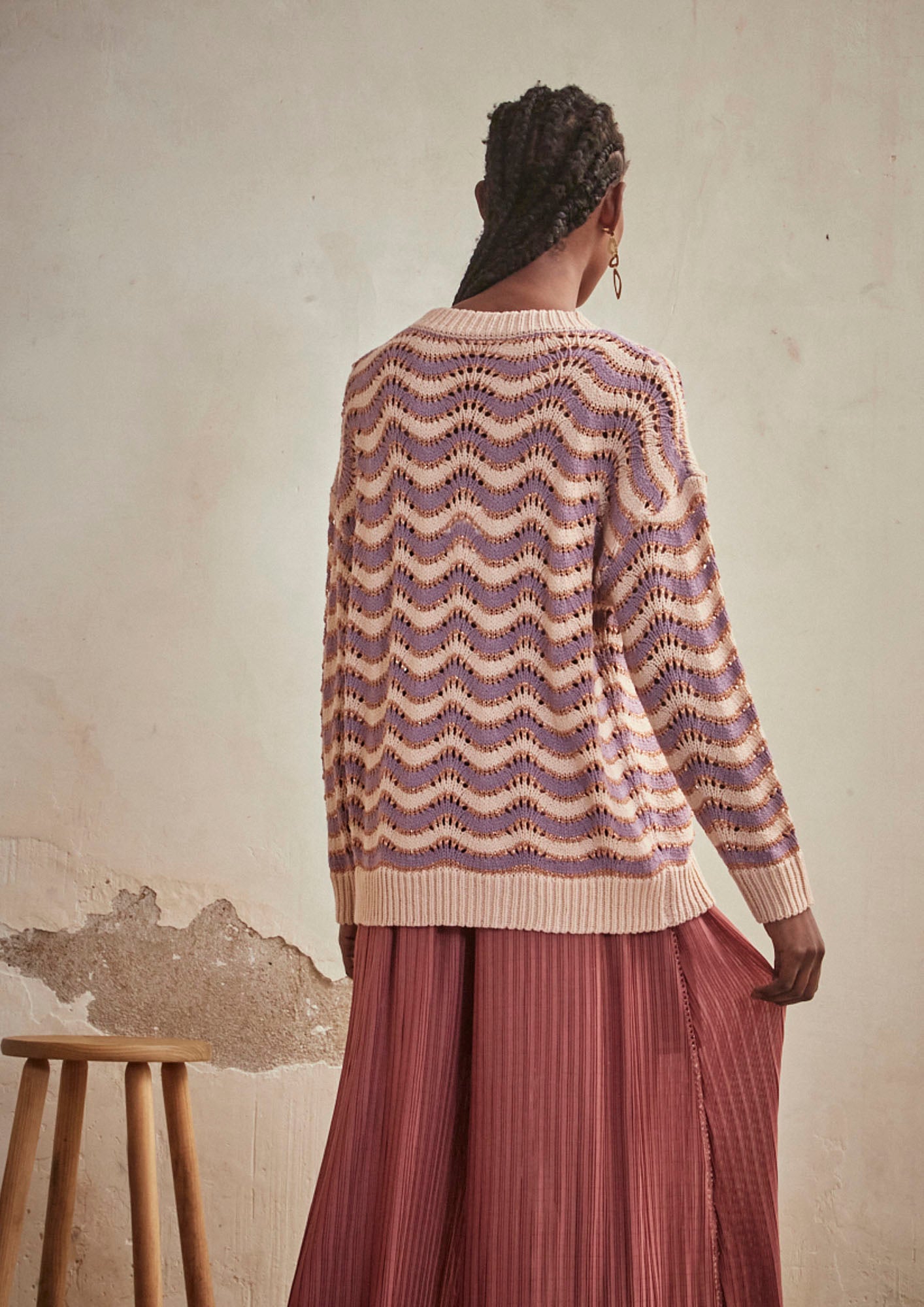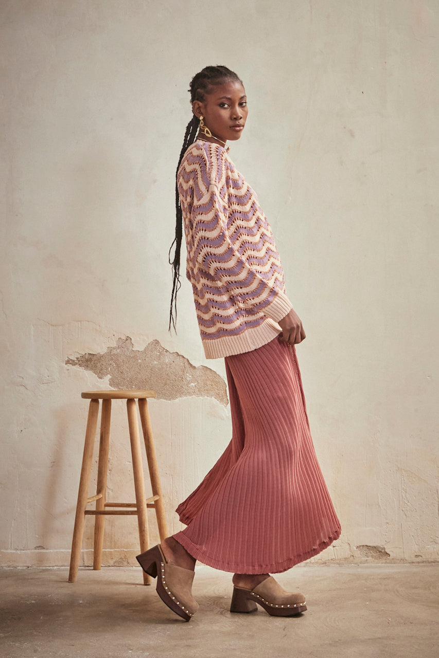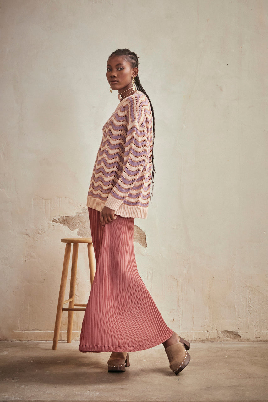 LONG SLEEVE JACQUARD ZIC ZAG SWEATER - MAUVE