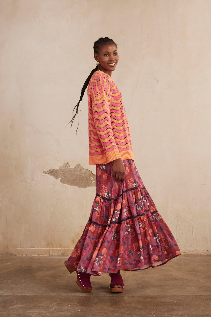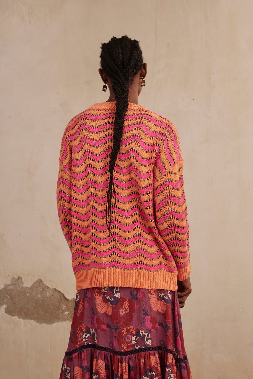 JACQUARD ZIG ZAG LONG SLEEVE SWEATER - FUCHSIA