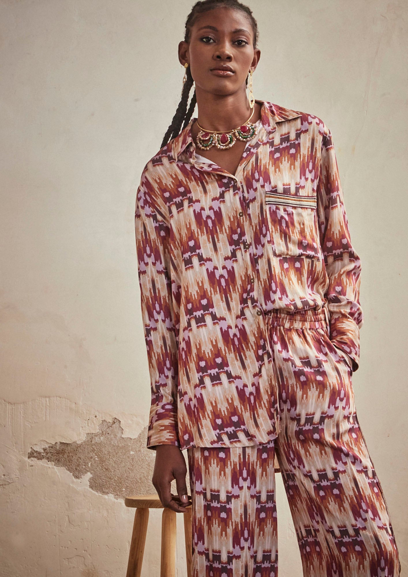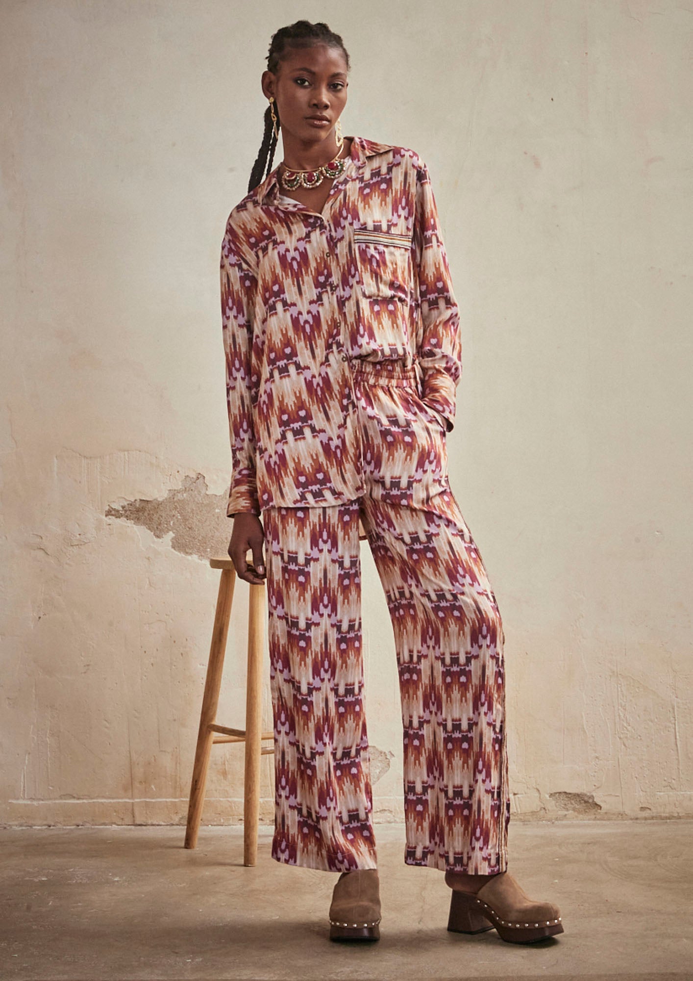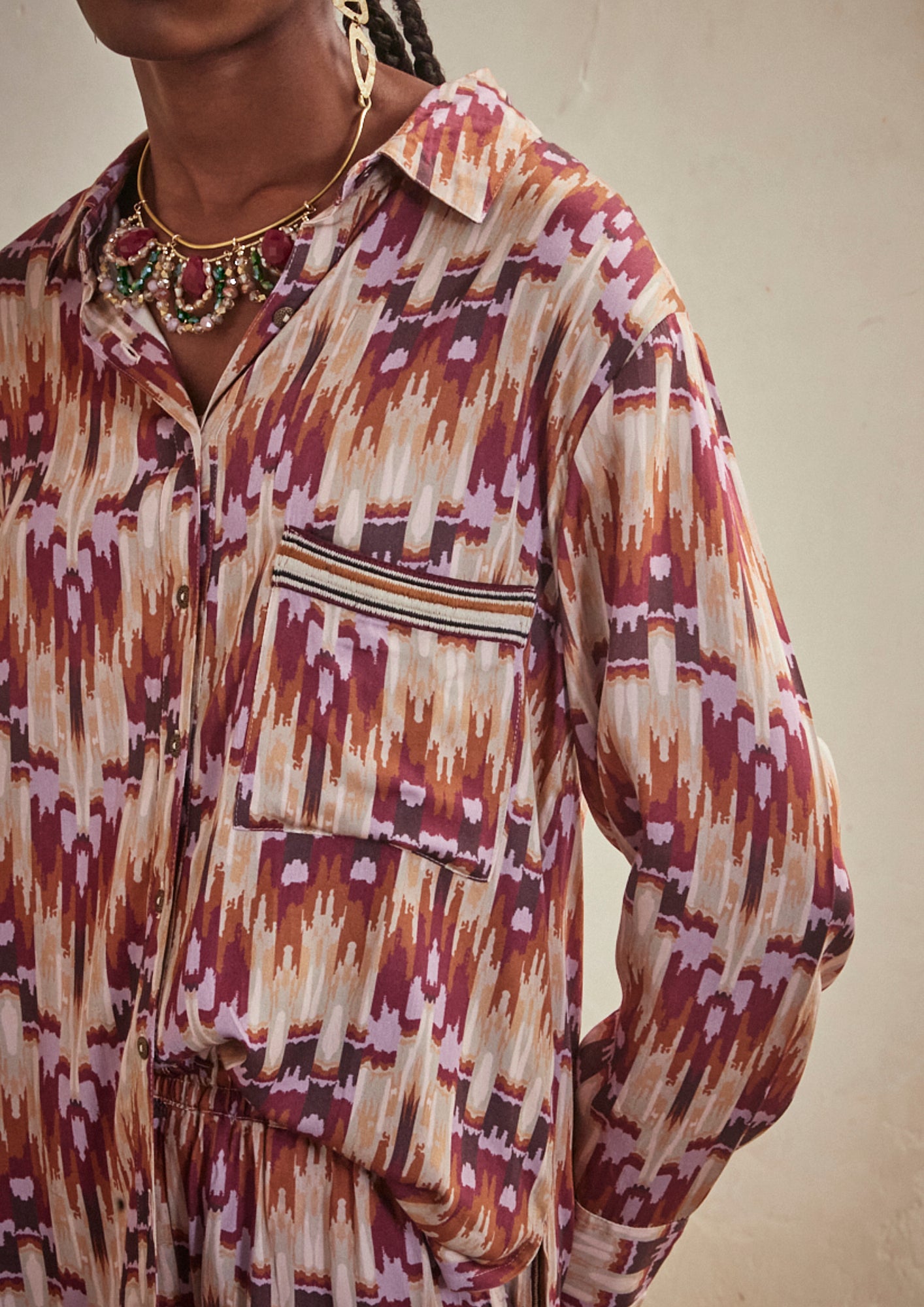 PRINTED LONG SLEEVE SHIRT - WINE