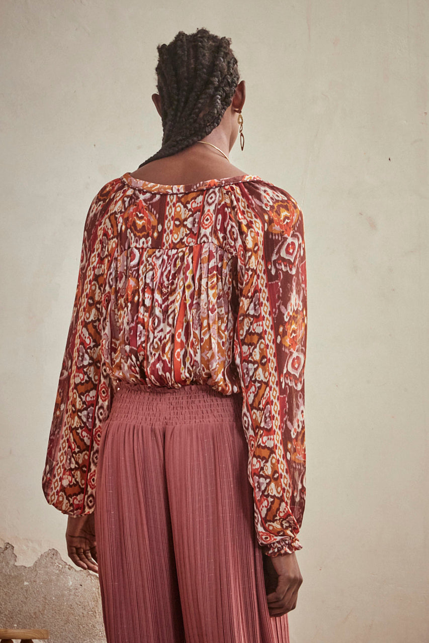 PRINTED LONG SLEEVE BLOUSE - MAGENTA
