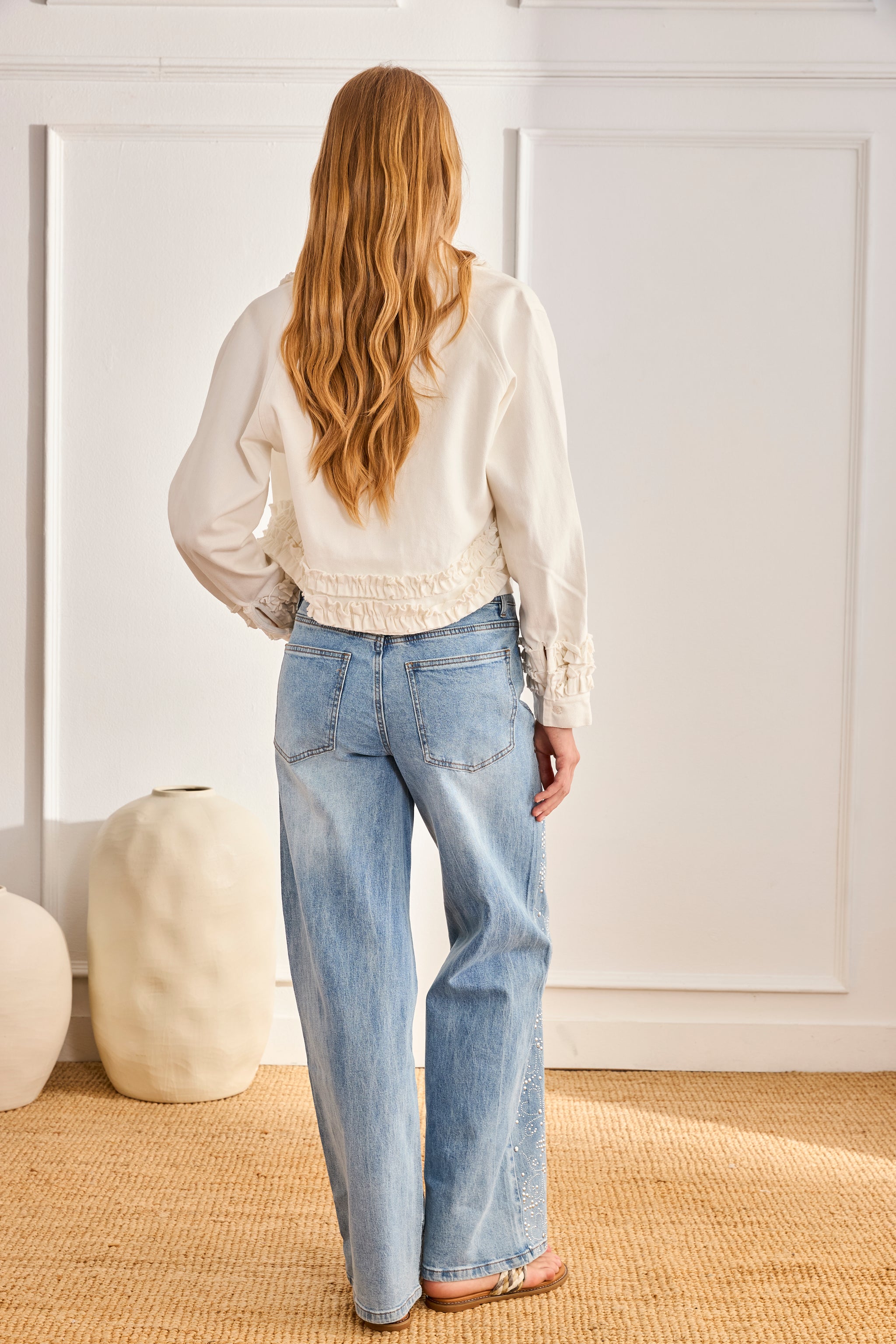 SHORT DENIM JACKET WITH RUFFLES - WHITE