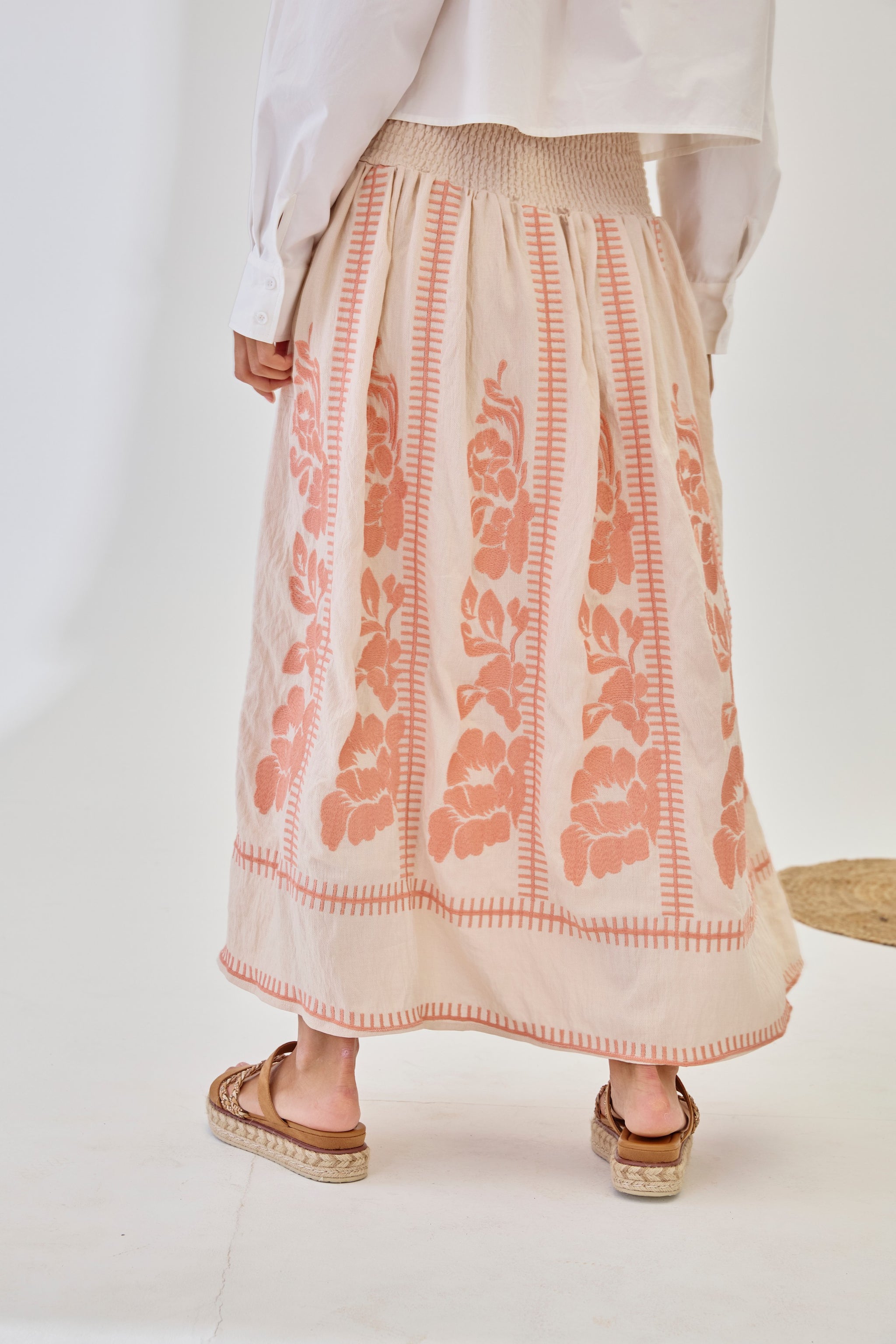 Embroidered Godets Skirt - Coral