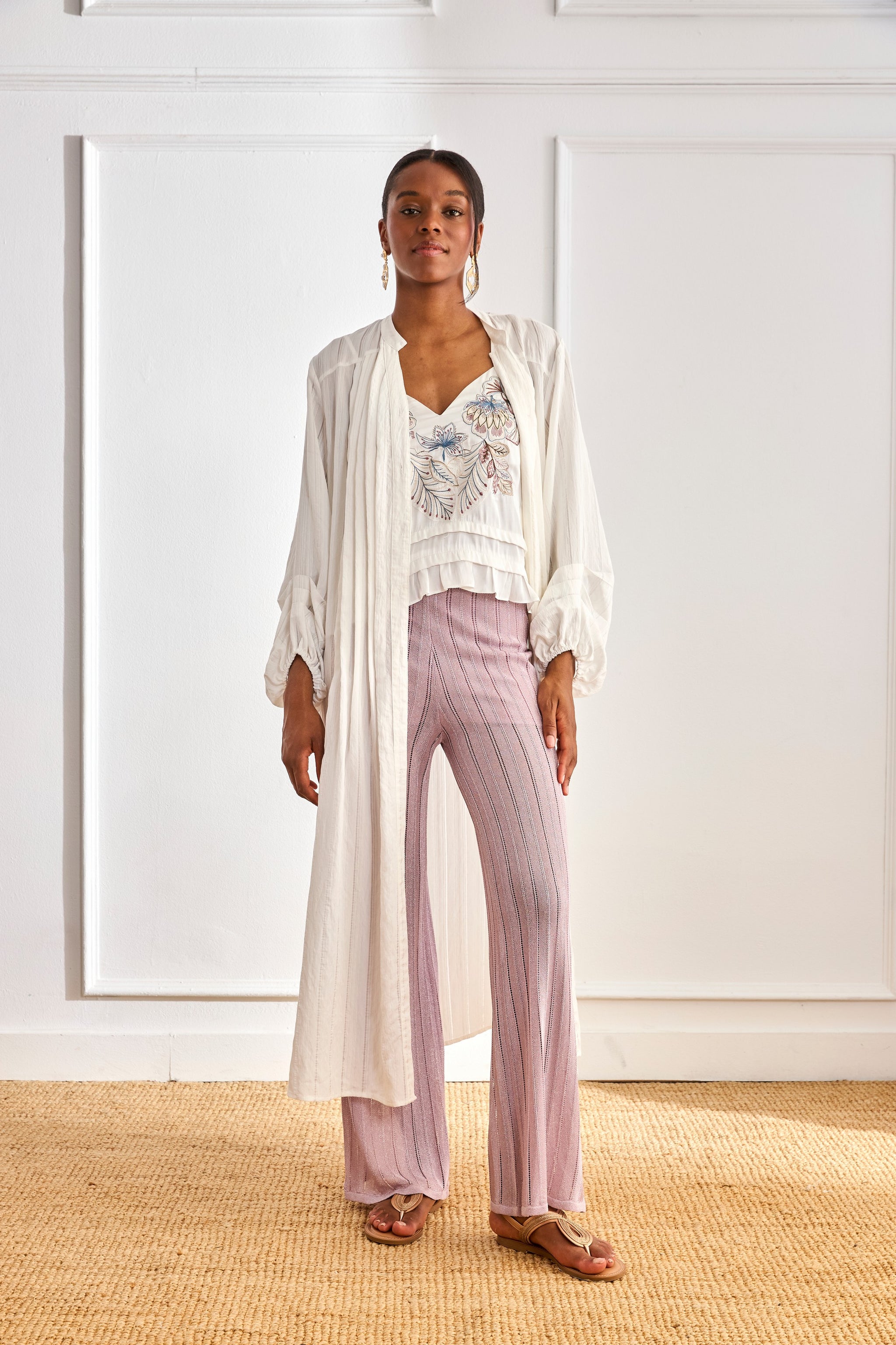 TOP MULTICOLORED EMBROIDERED FLOWERS - WHITE