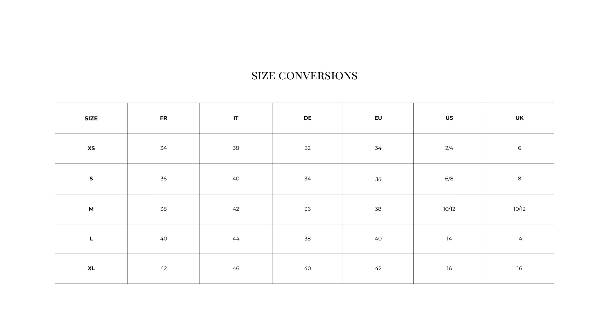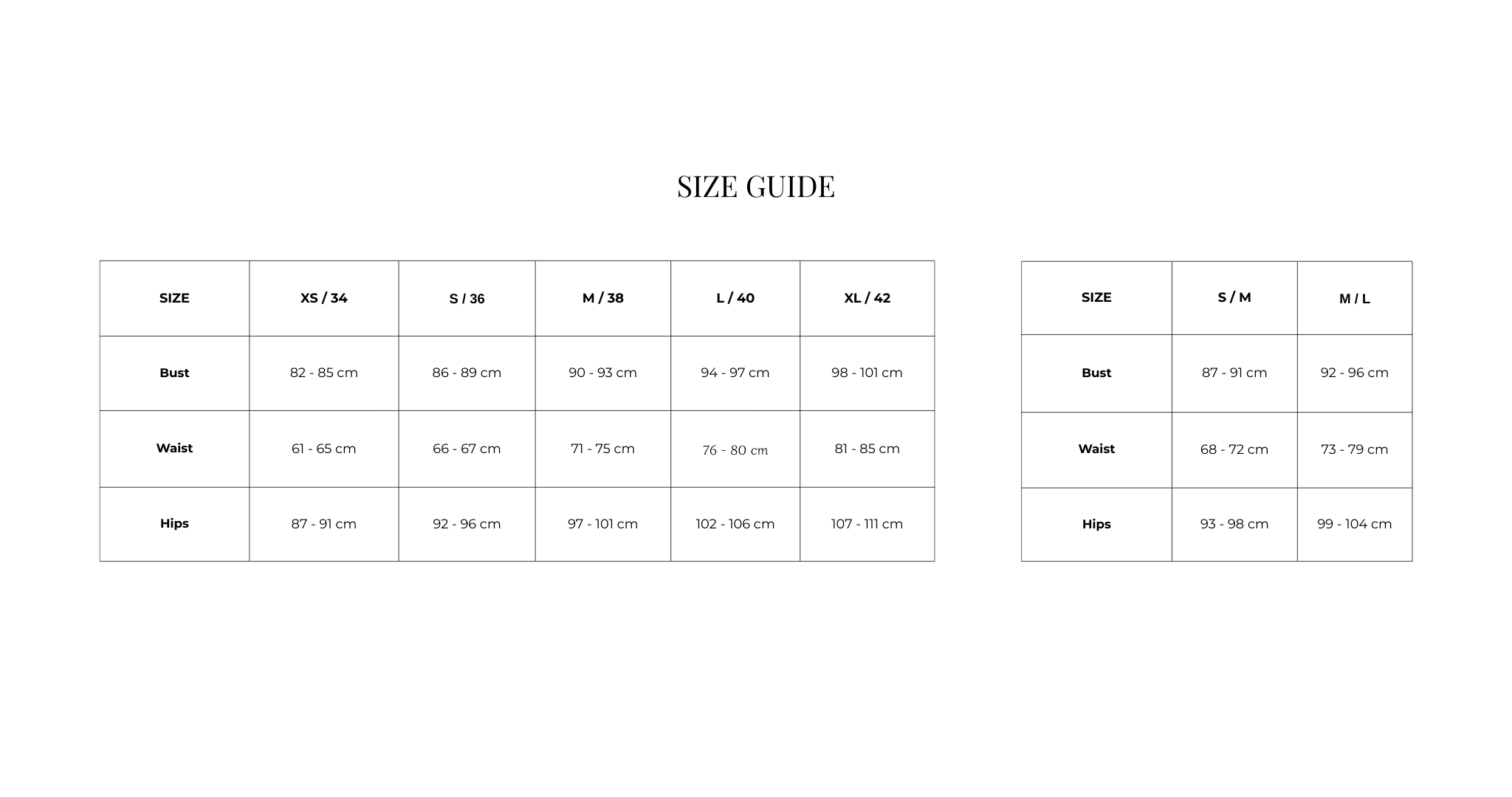 • Size guide