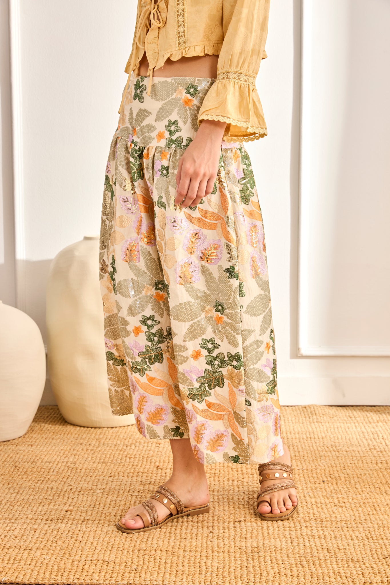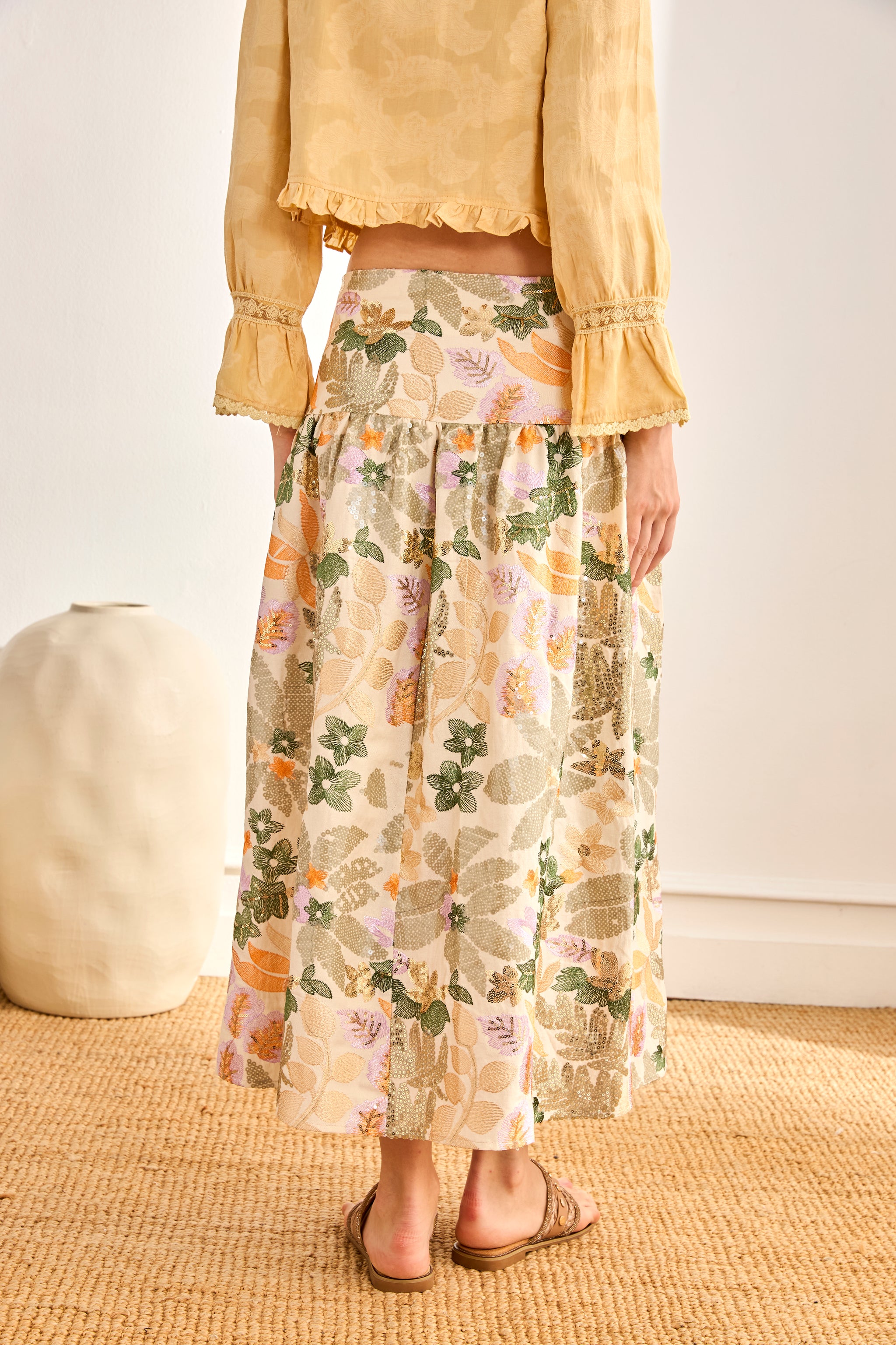 LONG SKIRT WITH EMBROIDERED FLOWERS AND SEQUINS - OFF-WHITE