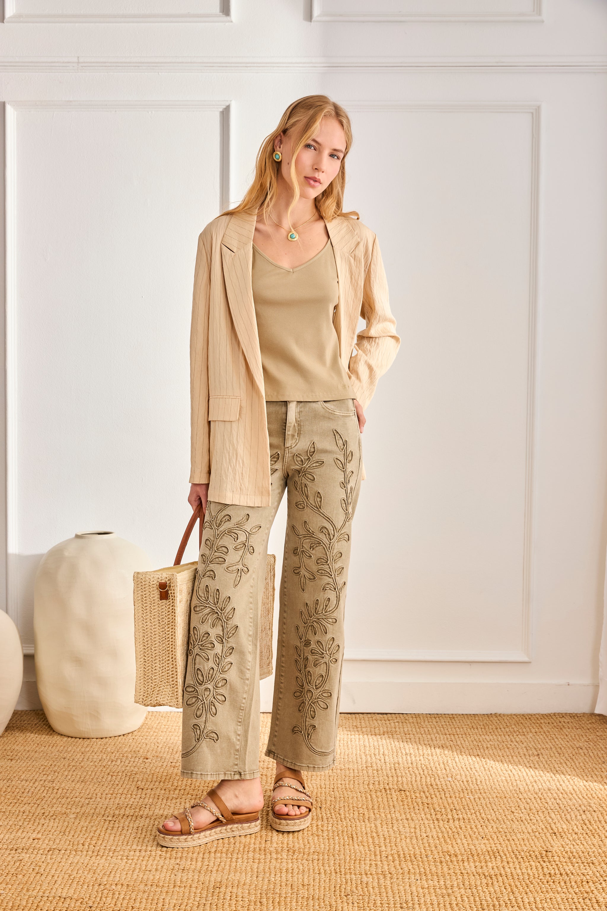 PINSTRIPE BLAZER WITH OPEN-BACK DETAILS - CAMEL