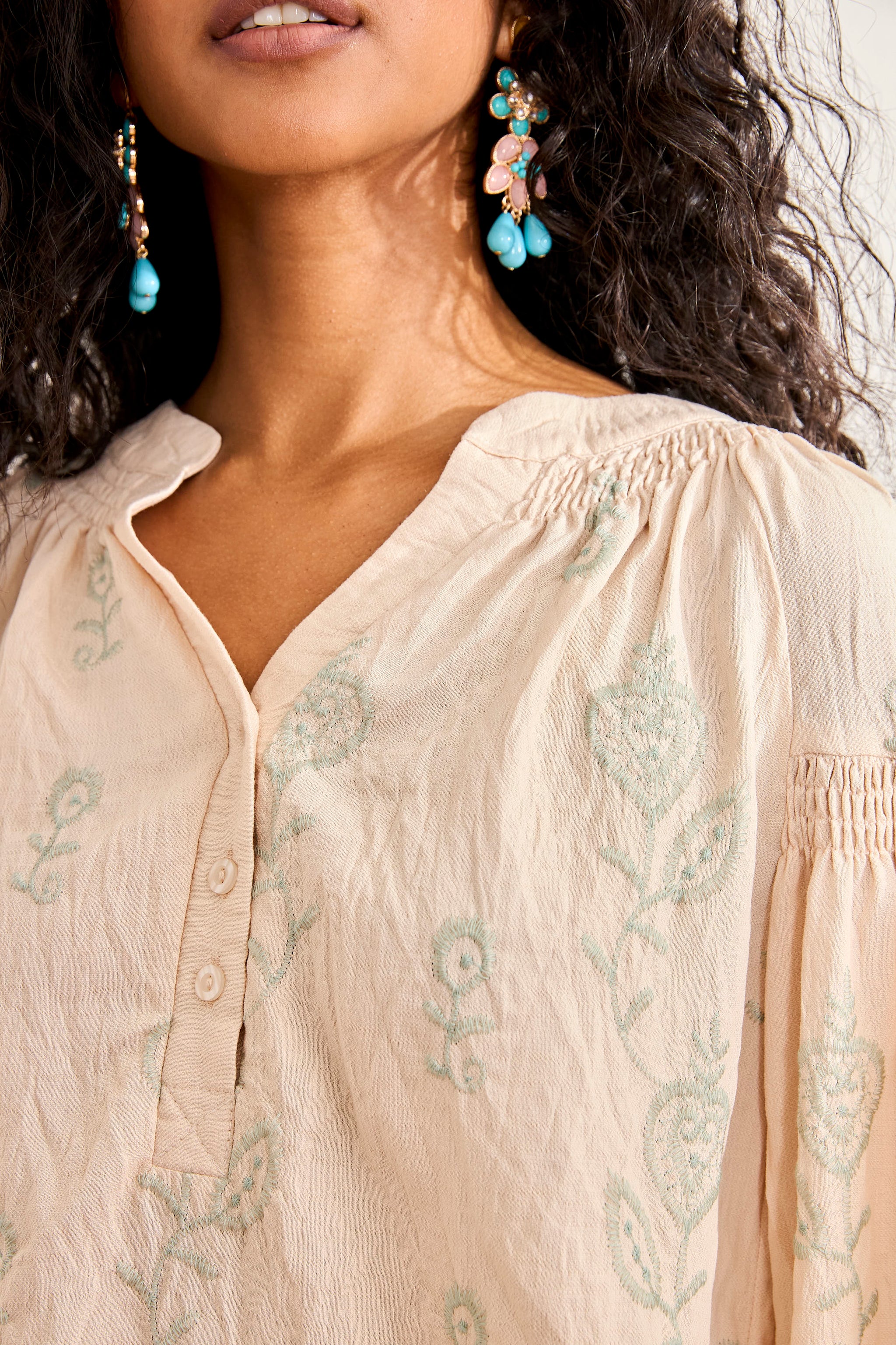 EMBROIDERED PALM TREE BLOUSE - OFF-WHITE