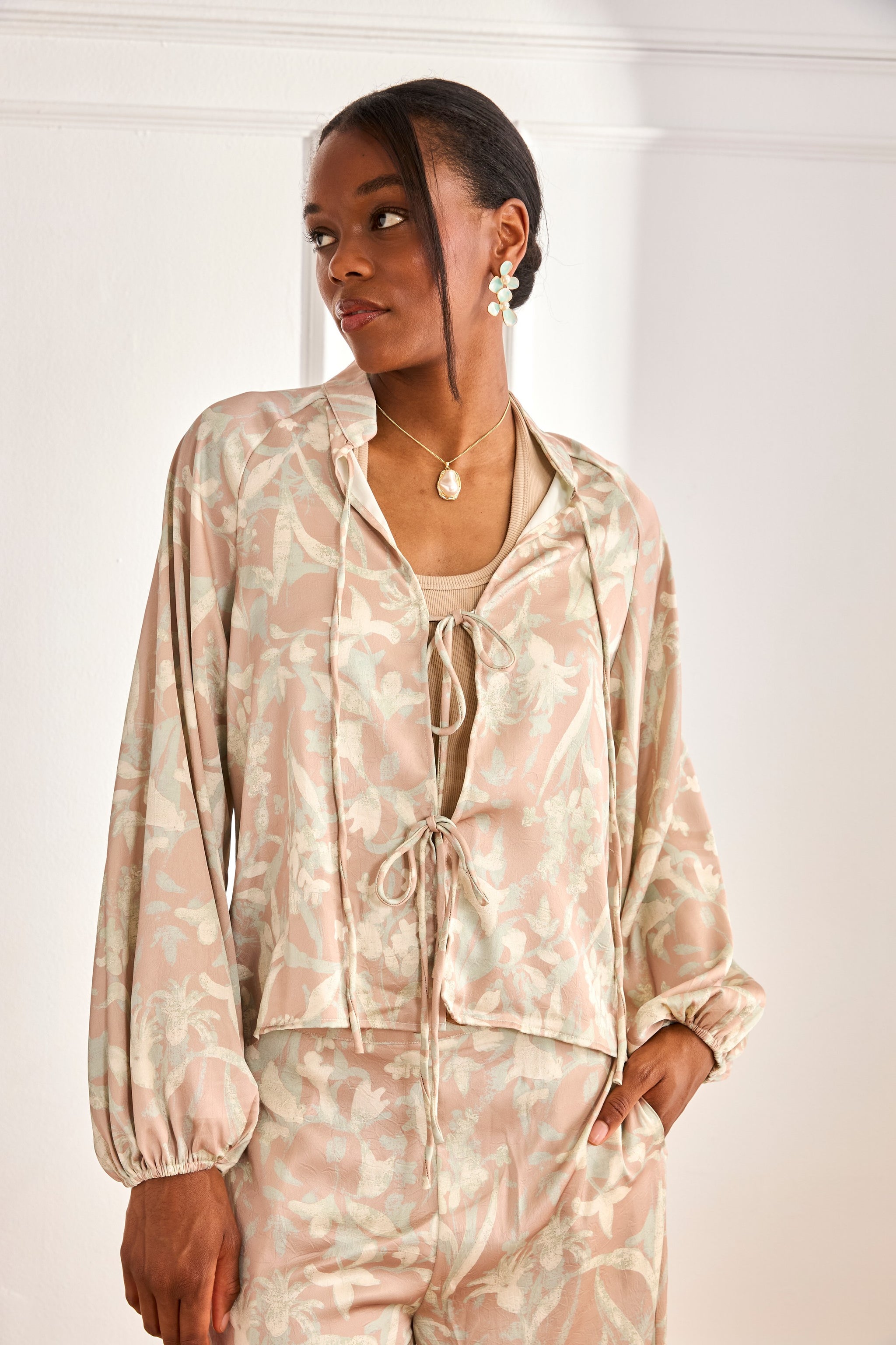 MAO BLOUSE FLOWERS RIBS - PINK