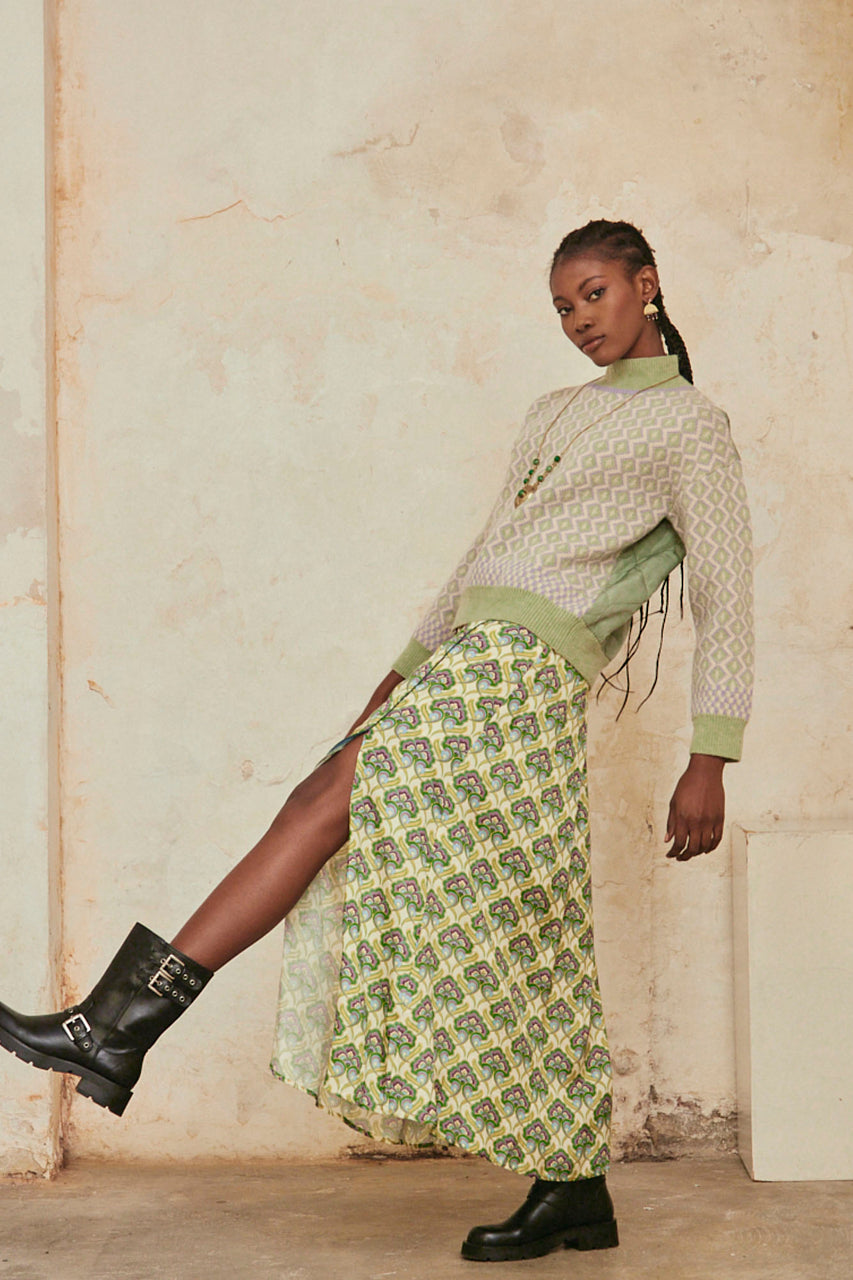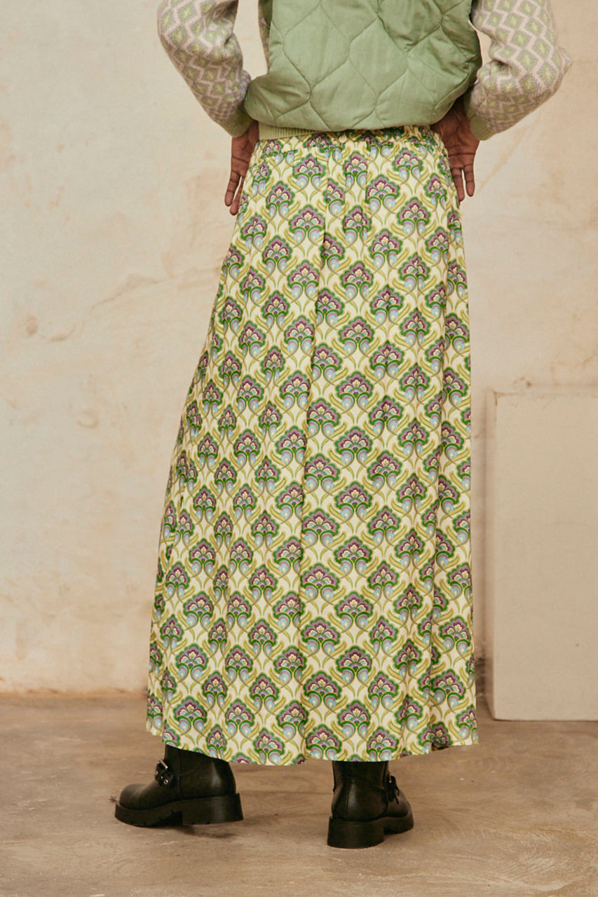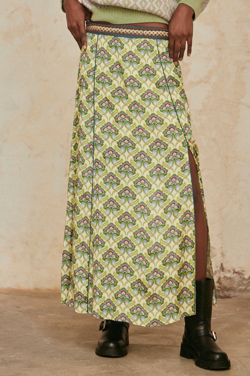 FALDA LARGA ESTAMPADA CON BORDADO - GREEN