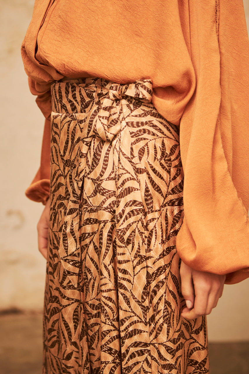 FALDA LARGA ESTAMPADA CON PEDRERÍA - CAMEL