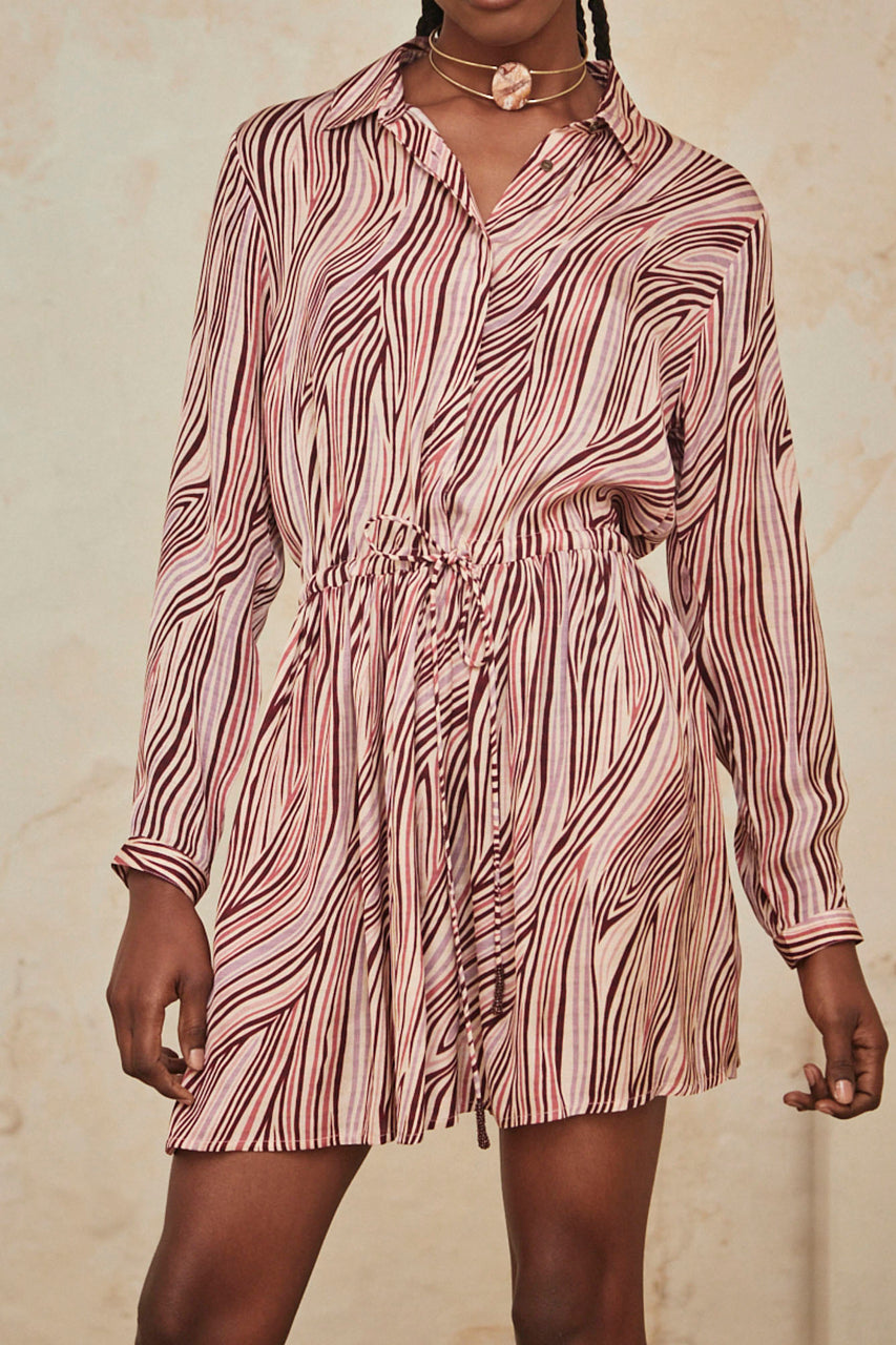 VESTIDO CORTO MANGA LARGA ESTAMPADO - WINE