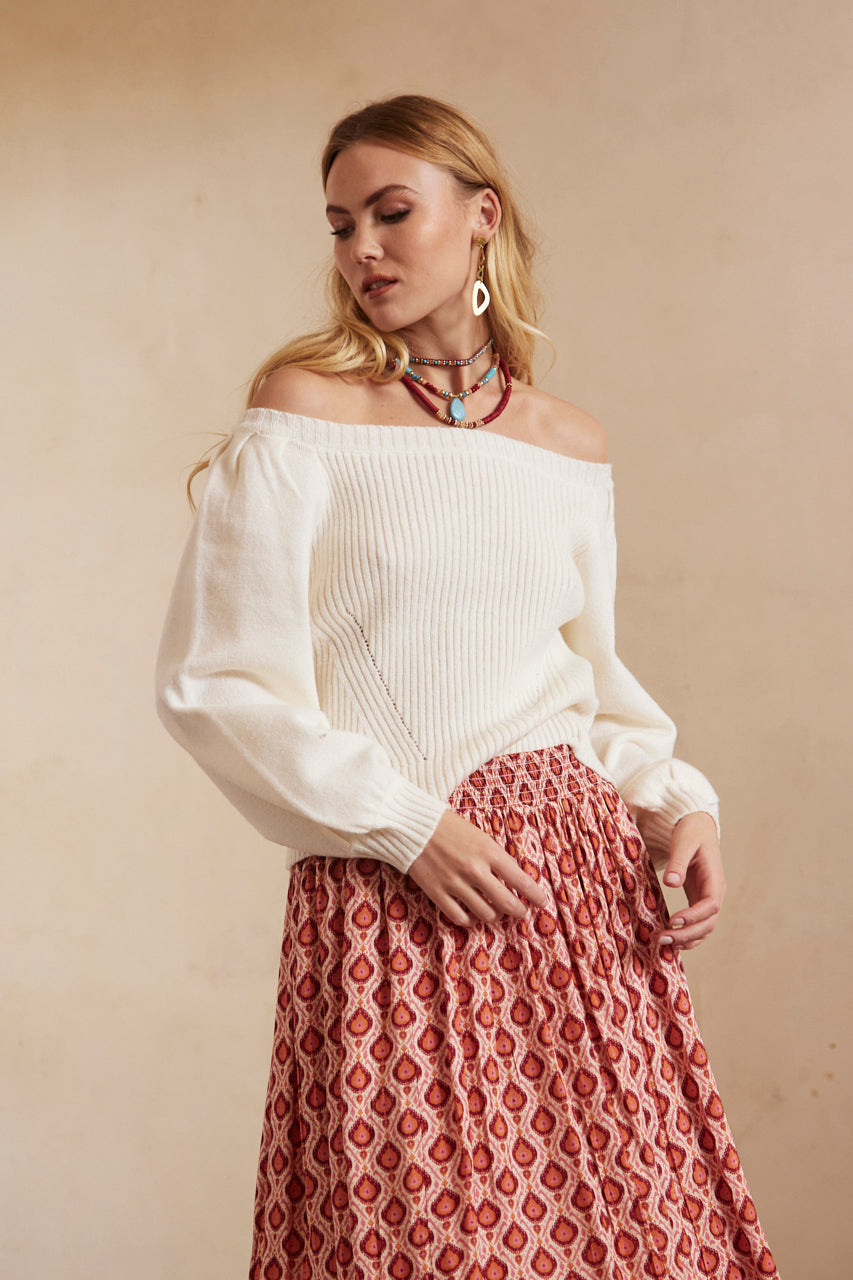 JERSEY AJUSTADO MANGA LARGA CON VOLUMEN - IVORY