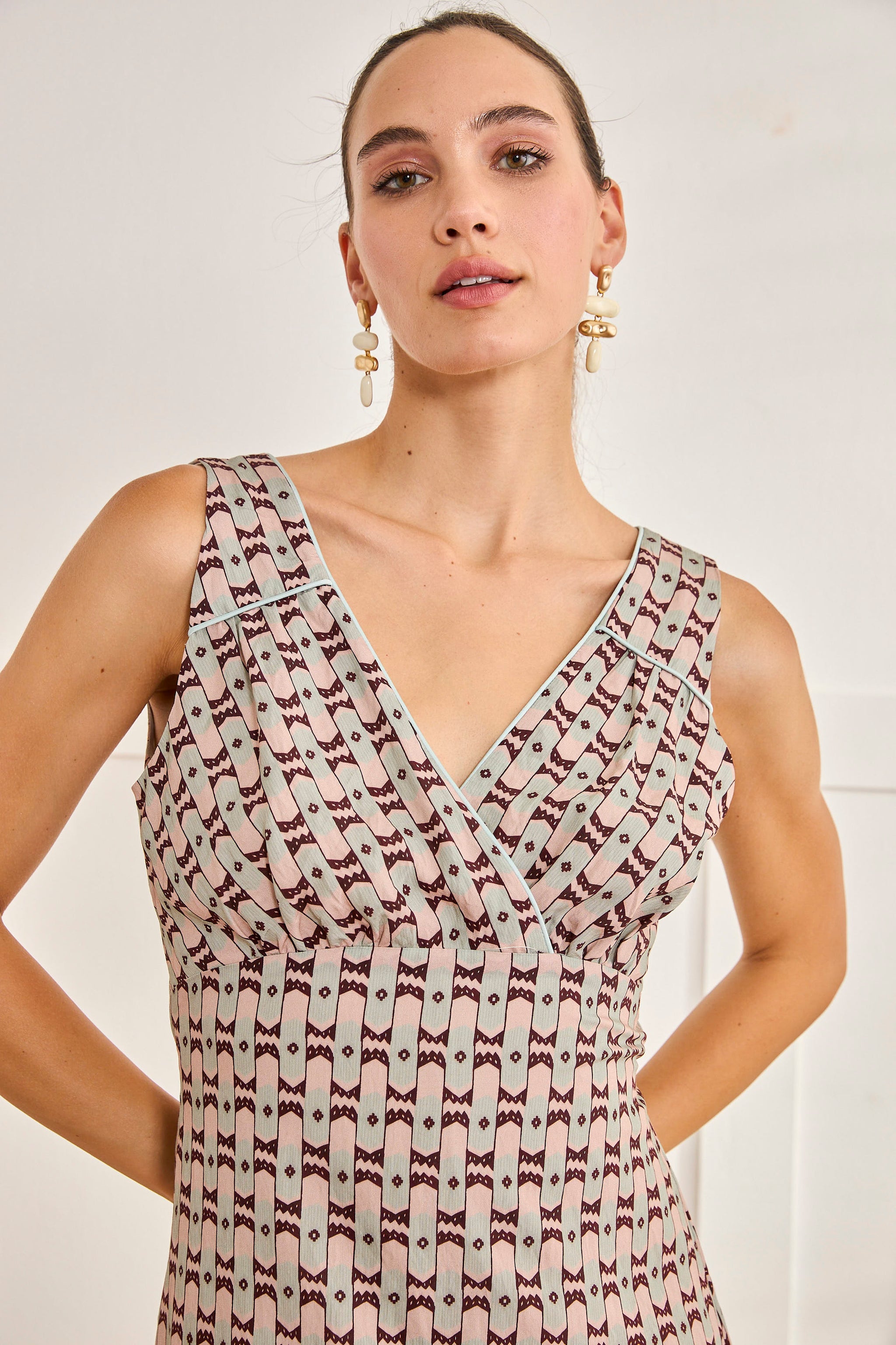 VESTIDO LARGO ESTAMPADO RETRO - ROSA