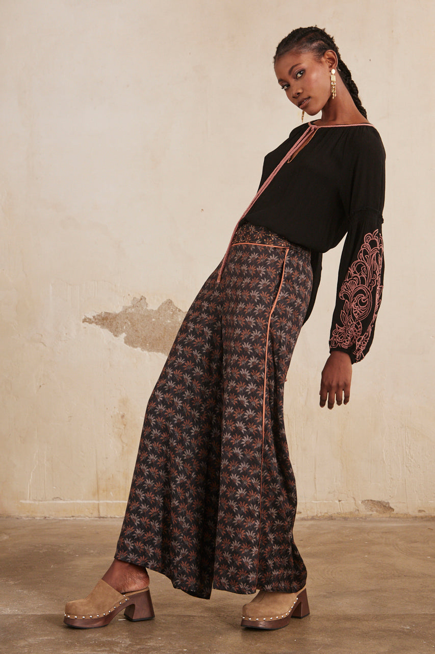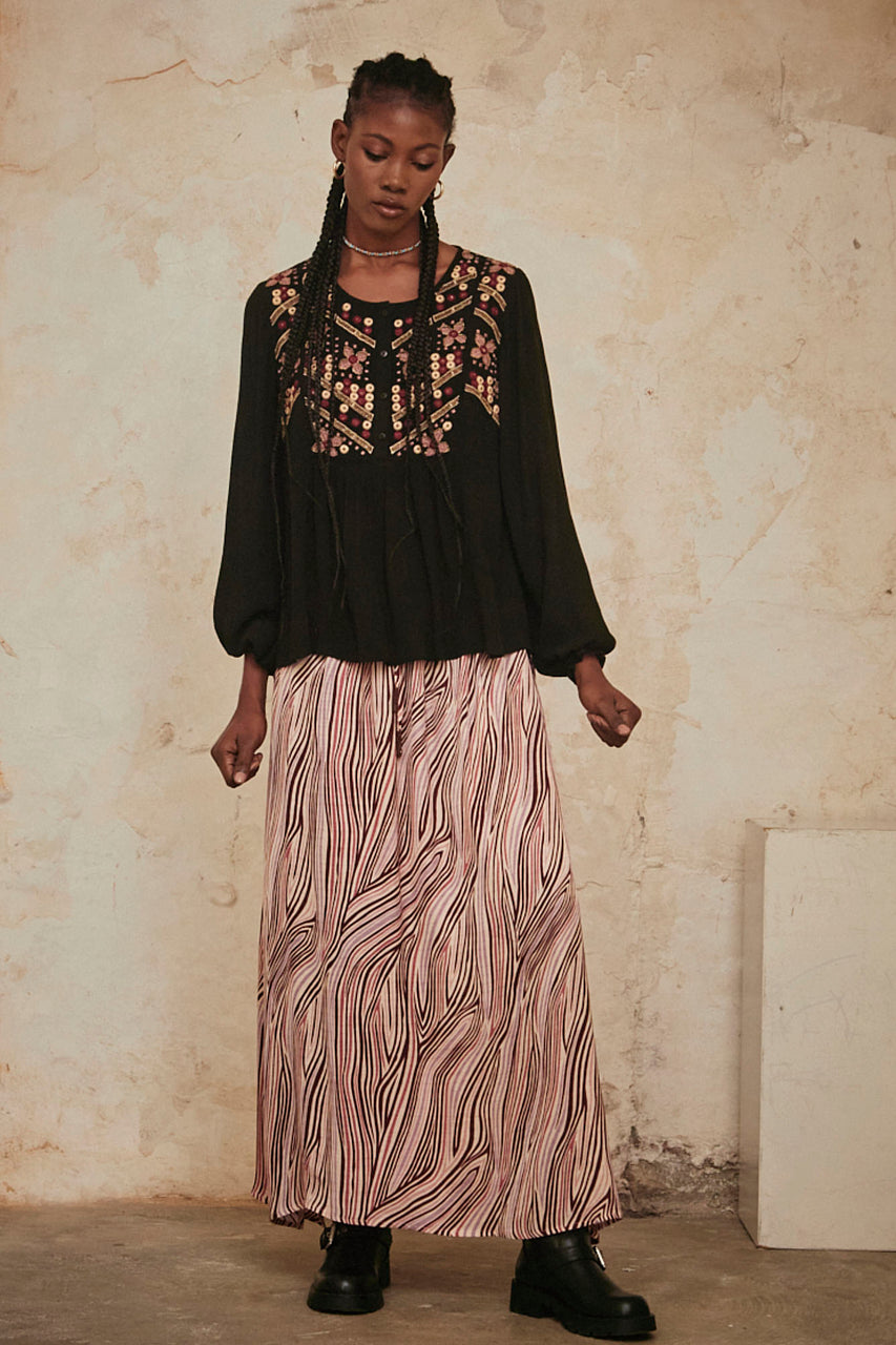 BLUSA OVERSIZE MANGA LARGA CON BORDADOS - BLACK