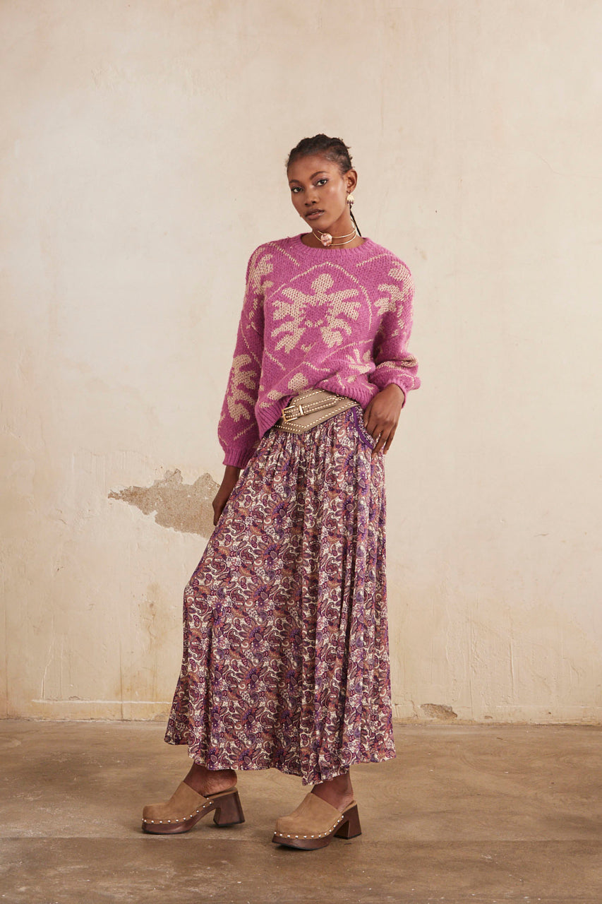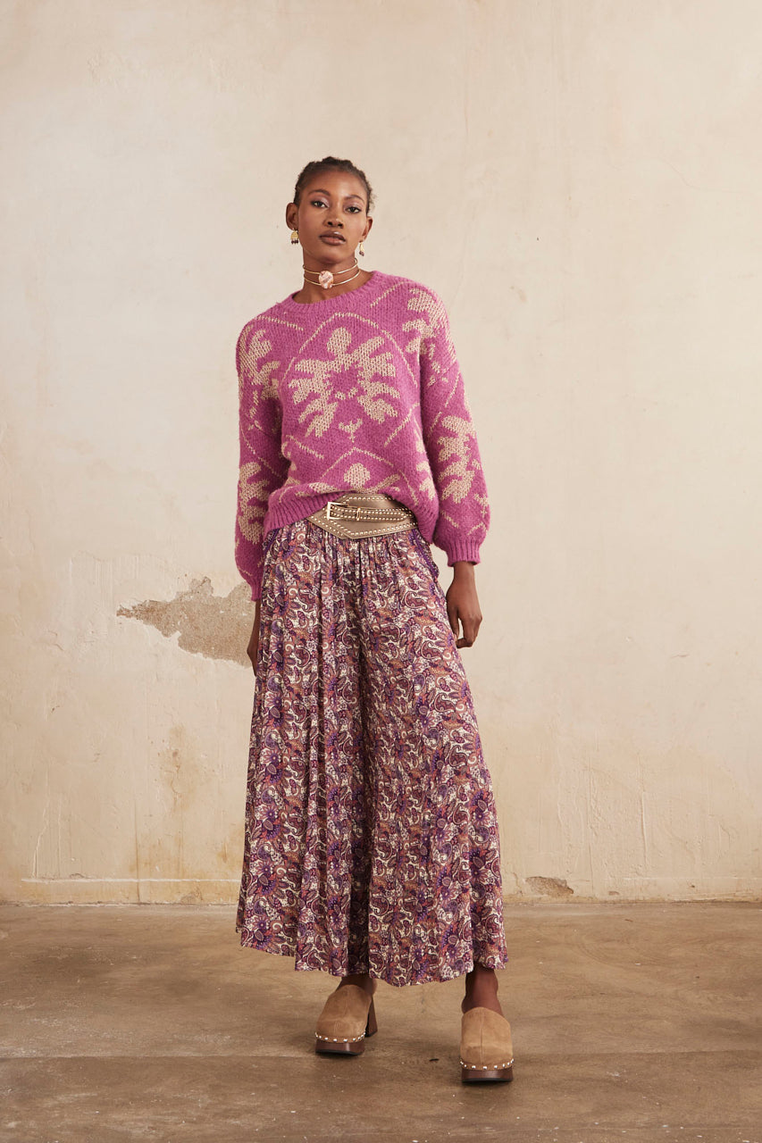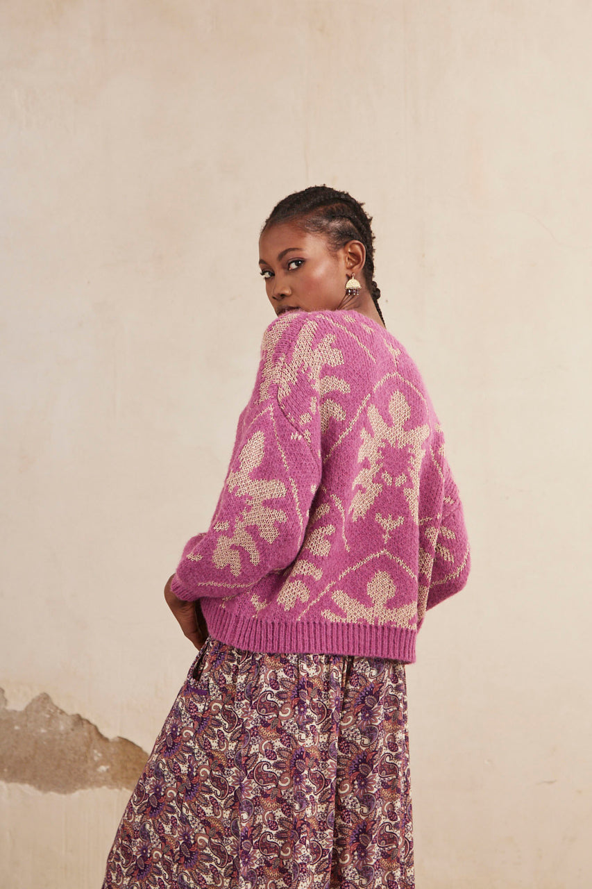 JERSEY MANGA LARGA JACQUARD CON LÚREX - FUCSIA