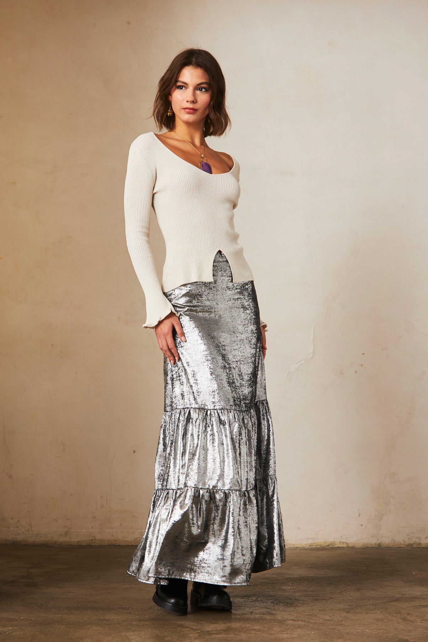 JERSEY AJUSTADO MANGA LARGA ACAMPANADA - IVORY