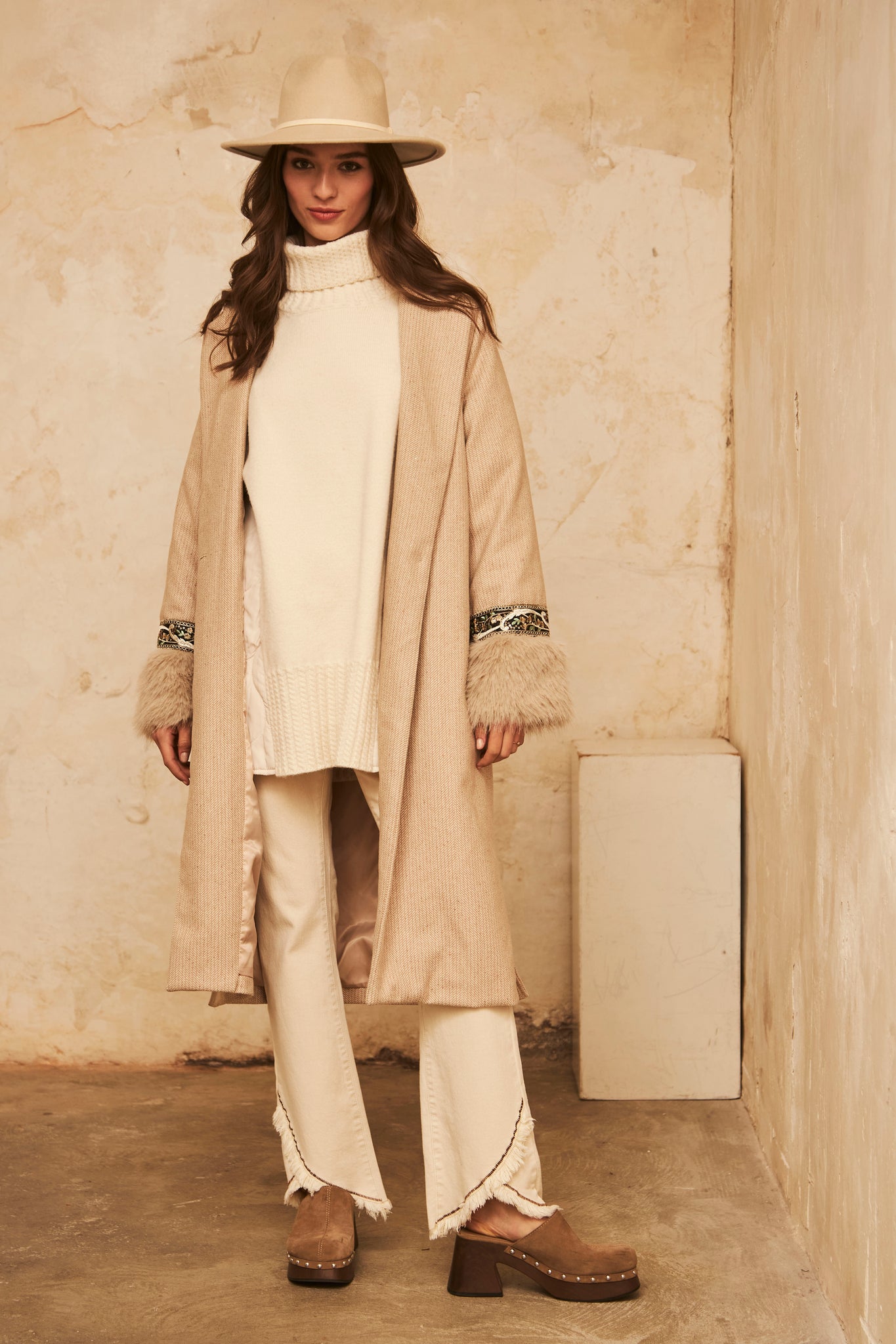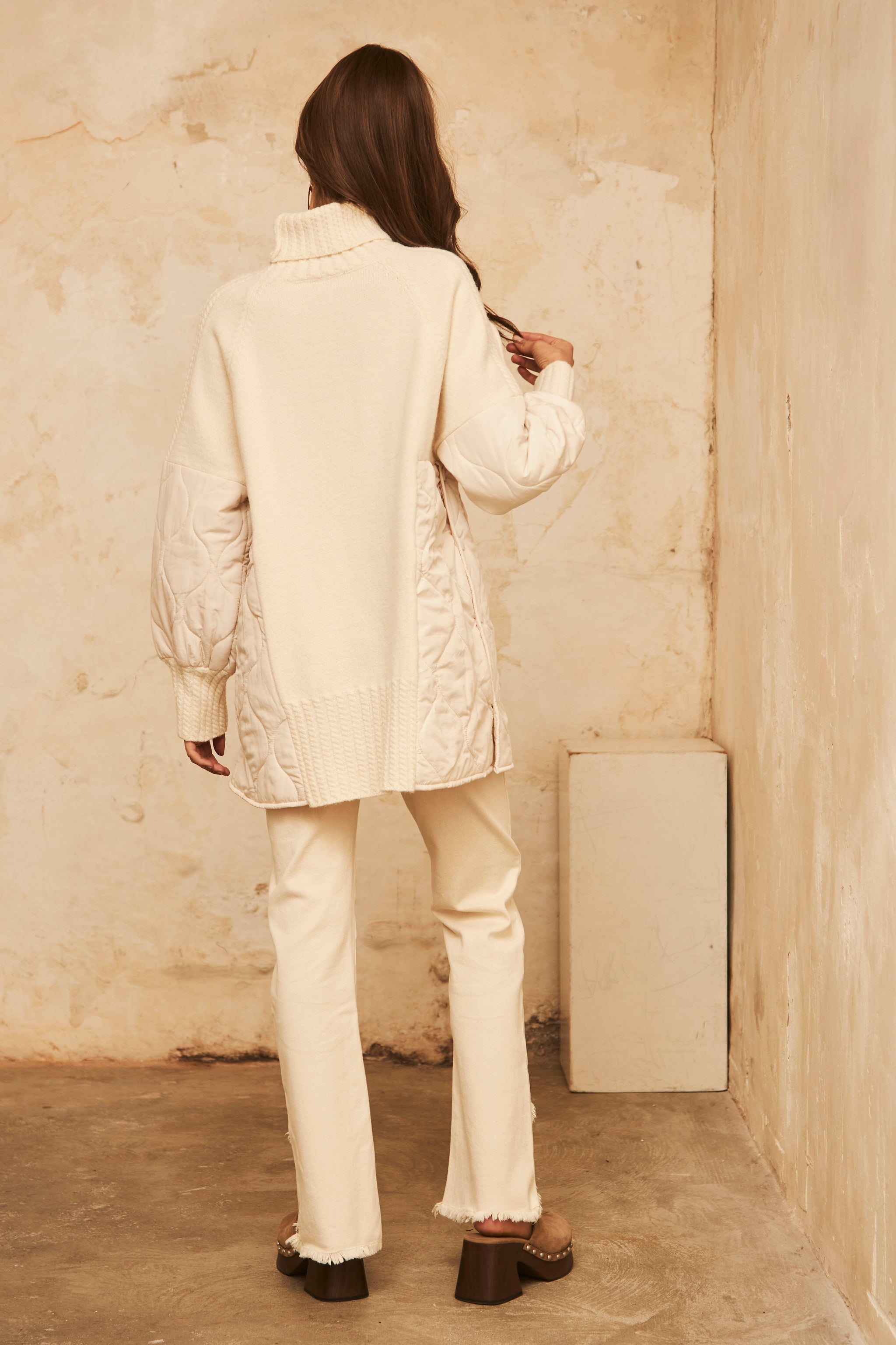 JERSEY OVERSIZE MANGA LARGA CUELLO CISNE COMBINADO CON TEJIDO ACOLCHADO - IVORY