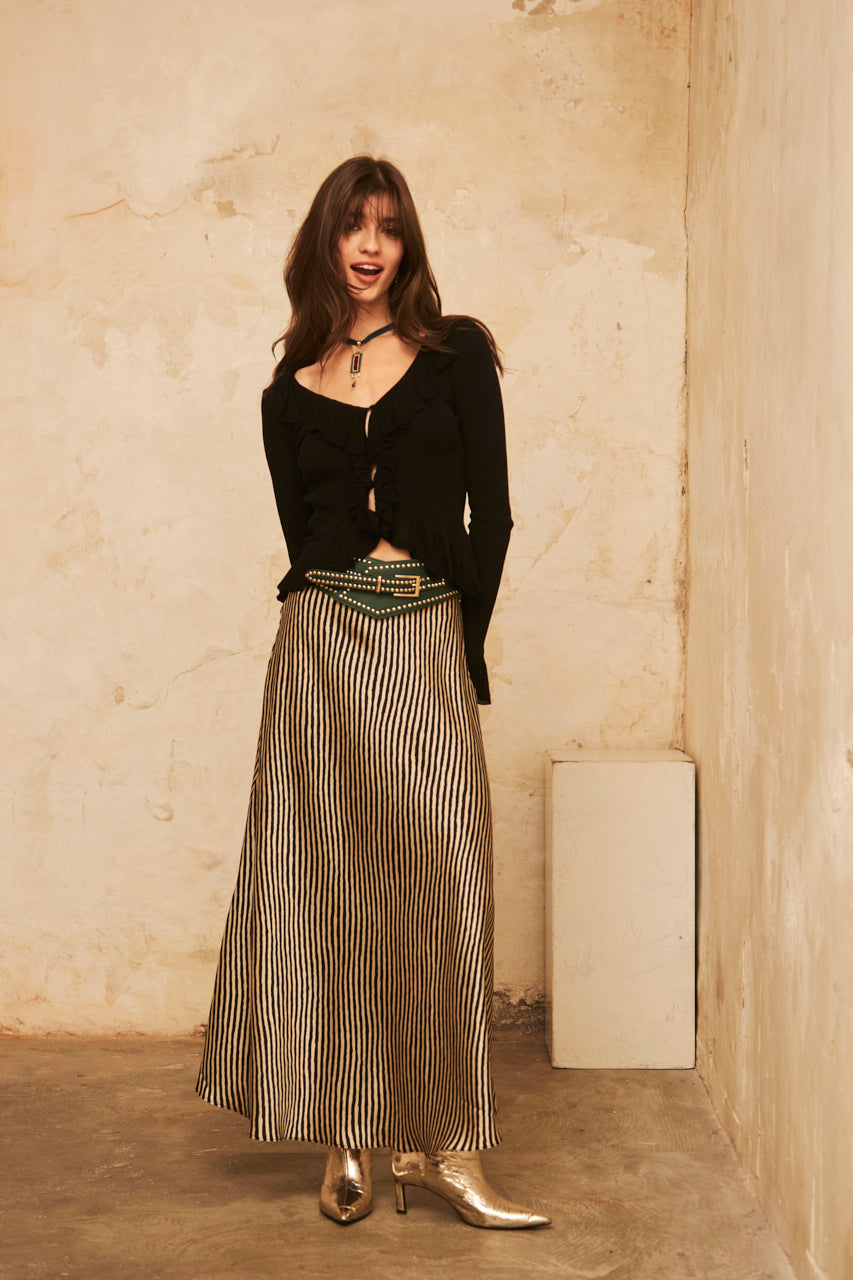 CARDIGAN AJUSTADO MANGA LARGA CON VOLANTES - BLACK