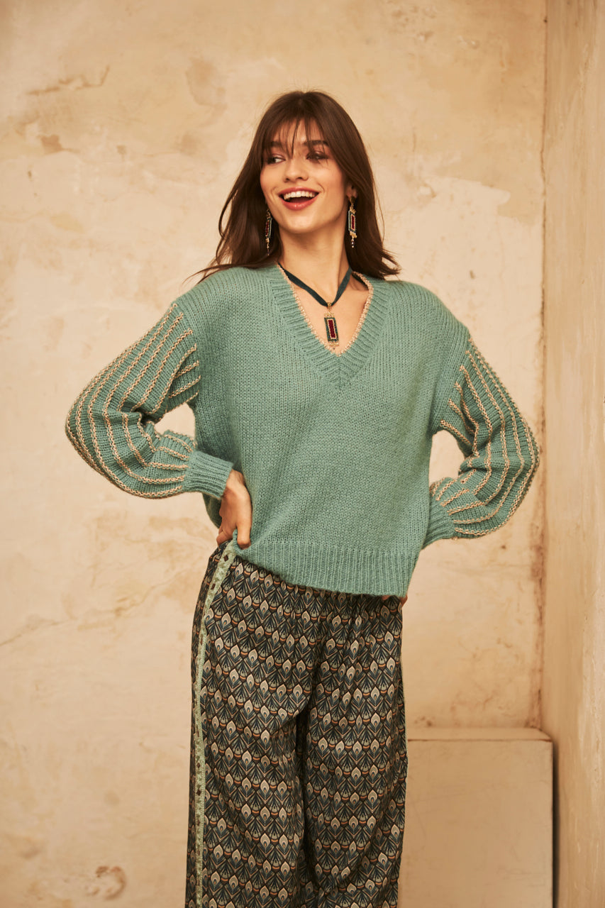 JERSEY MANGA LARGA ABULLONADA CON DETALLE LUREX - COBALT