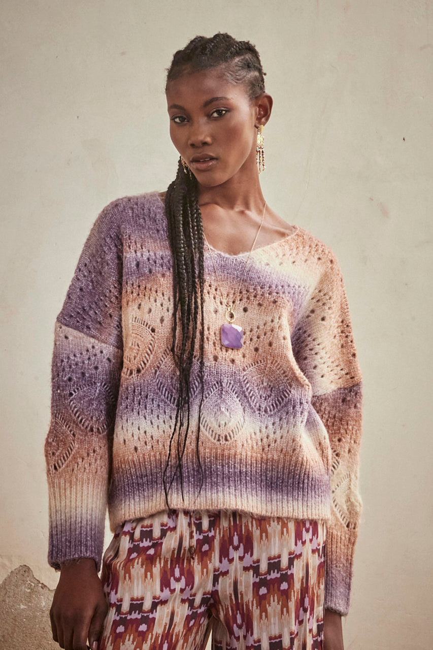 JERSEY OVERSIZE MANGA LARGA CON CALADOS Y DEGRADADO - MAUVE
